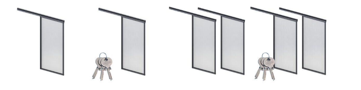 Skleník je v základním provedení vybaven posuvnými dveřmi, které jsou navrženy pro plynulý chod a každodenní pohodlné používání. Kromě základních dveří je možné dokoupit další posuvné dveře a umístit je na přední, zadní nebo boční stěny skleníku, čímž lze výrazně zvýšit komfort, přístupnost i možnosti větrání. Na výběr jsou jednokřídlé i dvoukřídlé posuvné dveře, a to včetně variant s uzamykáním. Dvoukřídlé posuvné dveře jsou dostupné v případě, že délka boční stěny dosahuje minimálně 310 cm. Konkrétní kombinace a možnosti se vždy odvíjejí od zvoleného rozměru skleníku.