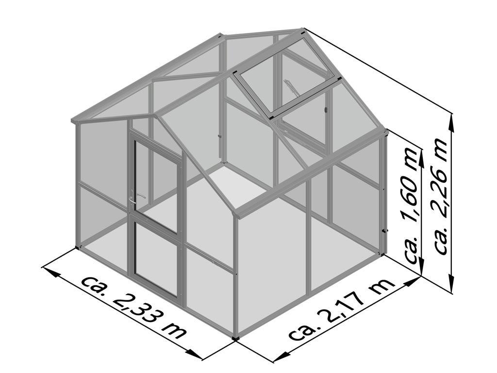 Pohodlná výška stěny 1,60 m usnadňuje stání a práci ve vzpřímené poloze. To znamená, že rajčata a okurky mohou bez problémů růst do výšky a plně se rozvíjet. Robustní hliníková konstrukce spolu s 16 mm komůrkovými deskami ISO zajišťují optimální stabilitu. Praktické okapy s odtoky na obou stranách umožní svod dešťové vody do sudu.