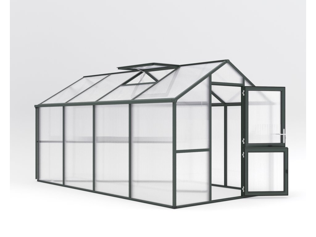 Pohodlná výška stěny 1,60 m usnadňuje stání a práci ve vzpřímené poloze. To znamená, že rajčata a okurky mohou bez problémů růst do výšky a plně se rozvíjet. Robustní hliníková konstrukce spolu s 16 mm komůrkovými deskami ISO zajišťují optimální stabilitu. Praktické okapy s odtoky na obou stranách umožní svod dešťové vody do sudu.