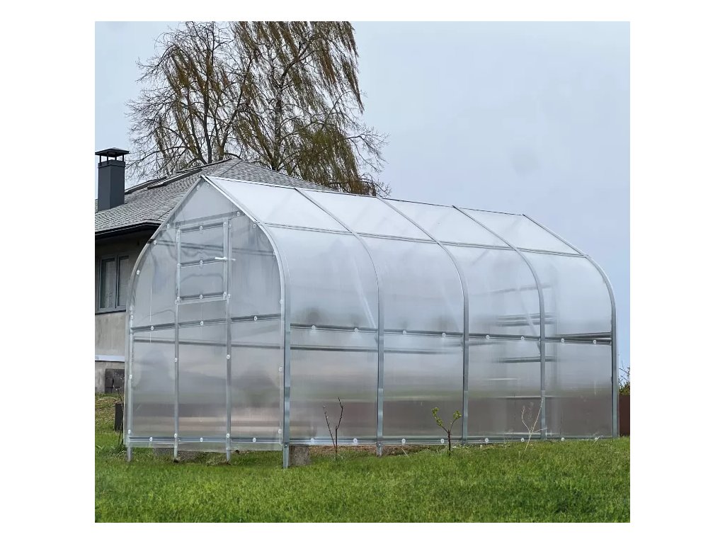 Zahradní skleník LEGI ONION R 4 x 2,5 m, 4 mm (Oblouková konstrukce) – konstrukce z ocel - pozinkované profily (síla profilu 1 mm) v barvě stříbrná.