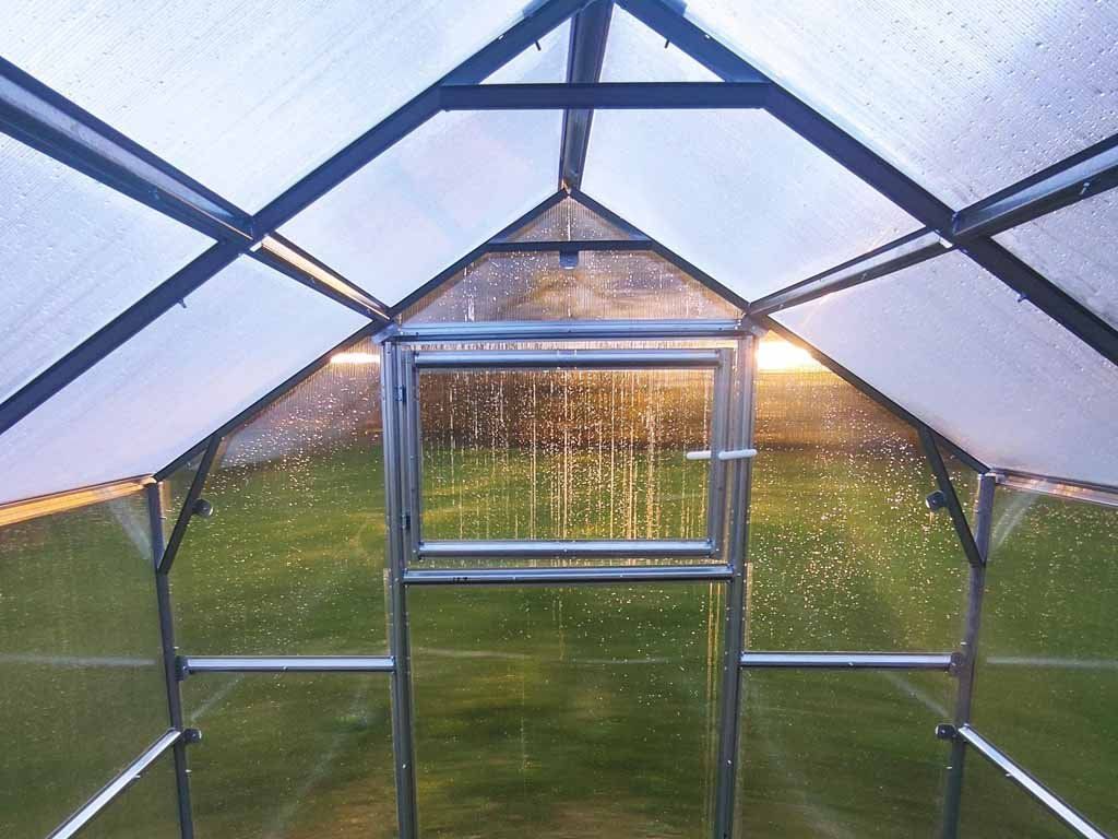 Zahradní skleník LEGI RUBARB 3 x 2,35 m, 4 mm (Hranatá konstrukce) – konstrukce z ocel - pozinkované profily (síla profilu 1 mm) v barvě stříbrná.
