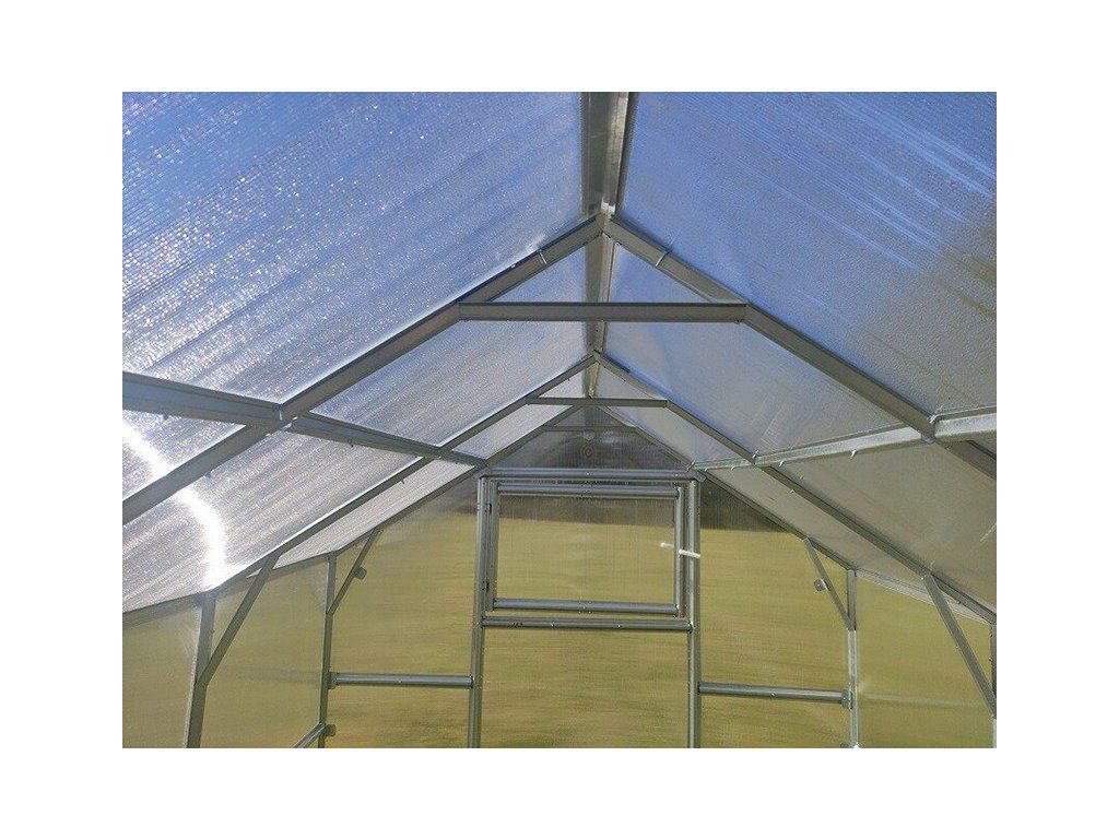 Zahradní skleník LEGI RUBARB 8 x 2,35 m, 4 mm (Hranatá konstrukce) – konstrukce z ocel - pozinkované profily (síla profilu 1 mm) v barvě stříbrná.