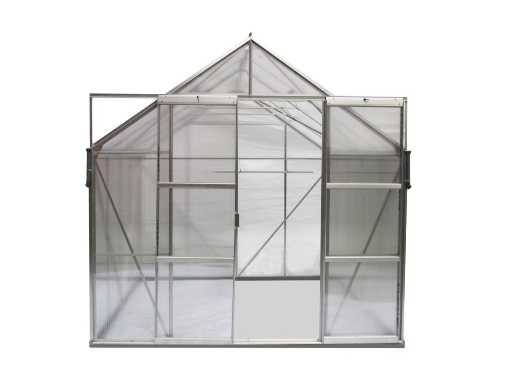 Obsahem balení jsou dvoukřídlé posuvné dveře (š x v otvoru = 1,22 x 1,91 m), AL profily, prosklení, 4x střešní ventilační okénko s manuálním otevíráním, veškerý spojovací materiál. Skleník lze postavit např. na zděnou podezdívku nebo na základnu z pozinkovaného plechu. Při stavbě bez podezdívky dokoupení základny doporučujeme. Ke skleníku je možné dokoupit řadu nadstandardního příslušenství - poličky, regály, další větrací střešní i boční okénka, automatické otvírače k těmto okénkům, okapové sady, teploměry, vlhkoměry, zavlažovací zařízení, elektrické odporové vytápění půdy.