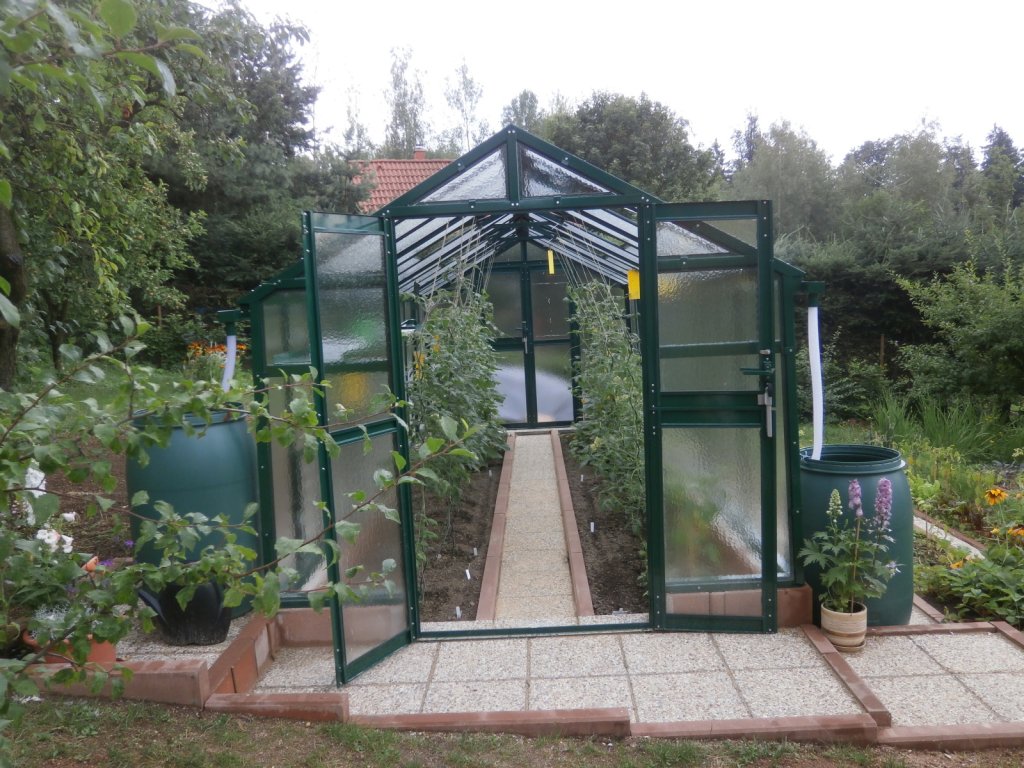 Specifikem tohoto typu skleníku jsou dvoukřídlové pantové dveře o šíři 105 cm. Pravé křídlo dveří je navíc výškově dělené, což vám pomůže zefektivnit větrání. Skleník je standardně dodáván s dveřmi pouze v čele, pokud byste uvítali dveře také na zadní straně skleníku, stačí se nám ozvat. Zajímavým a velmi praktickým doplňkem je možnost pořídit si ke skleníku prodloužené dveře, díky kterým získá skleník zcela jiné rozměry. Pokud byste měli o prodlužovací modul zájem, stačí, když nám napíšete e-mail, nebo nám zavoláte.