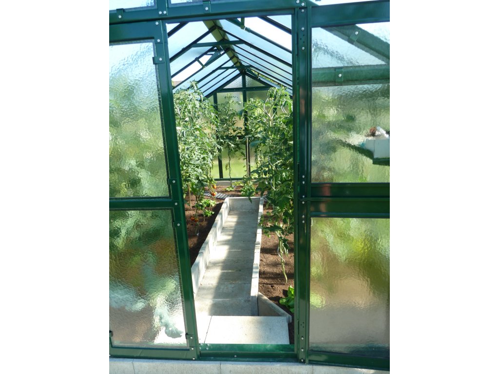 Specifikem tohoto typu skleníku jsou dvoukřídlové pantové dveře o šíři 105 cm. Pravé křídlo dveří je navíc výškově dělené, což vám pomůže zefektivnit větrání. Skleník je standardně dodáván s dveřmi pouze v čele, pokud byste uvítali dveře také na zadní straně skleníku, stačí se nám ozvat. Zajímavým a velmi praktickým doplňkem je možnost pořídit si ke skleníku prodloužené dveře, díky kterým získá skleník zcela jiné rozměry. Pokud byste měli o prodlužovací modul zájem, stačí, když nám napíšete e-mail, nebo nám zavoláte.