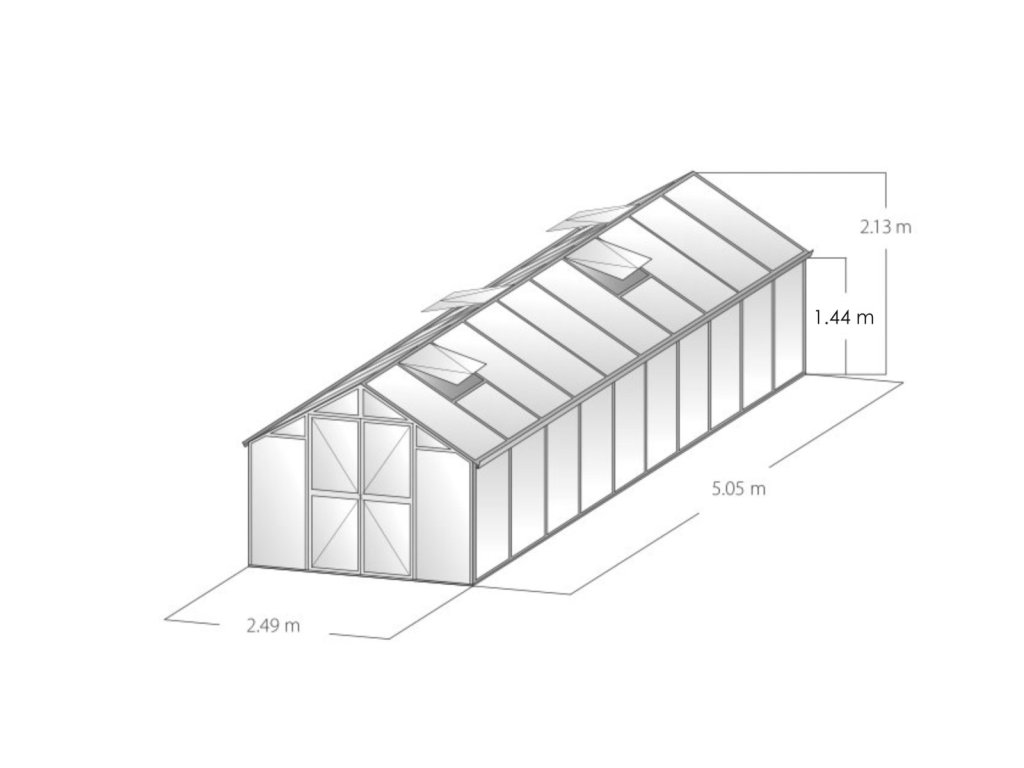 Specifikem tohoto typu skleníku jsou dvoukřídlové pantové dveře o šíři 105 cm. Zajímavým a velmi praktickým doplňkem je možnost pořídit si ke skleníku prodloužené dveře, díky kterým získá skleník zcela jiné rozměry. Pokud byste měli o prodlužovací modul zájem, stačí, když nám napíšete e-mail, nebo nám zavoláte.