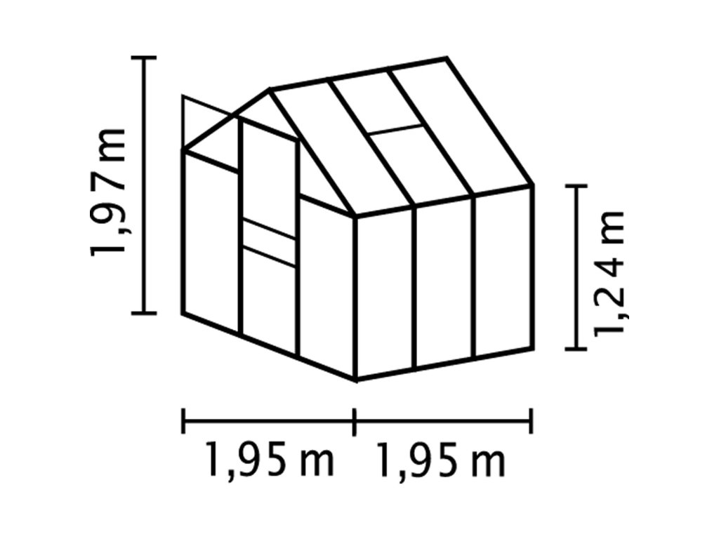 Obsahem balení jsou jednokřídlé posuvné dveře (š x v otvoru = 0,61 x 1,61 m), AL profily, prosklení, 1x střešní ventilační okénko s manuálním otevíráním, veškerý spojovací materiál. Skleník lze postavit např. na zděnou podezdívku nebo na základnu z pozinkovaného plechu. Při stavbě bez podezdívky dokoupení základny jednoznačně doporučujeme. Ke skleníku je možné dokoupit řadu nadstandardního příslušenství - poličky, regály, další větrací střešní i boční okénka, automatické otvírače k těmto okénkům, okapové sady, teploměry, vlhkoměry, zavlažovací zařízení, elektrické odporové vytápění půdy. Skleník dodáváme jako stavebnici s podrobným montážním návodem. Baleno v papírovém kartonu. Prosklení je zabalené v nevratné dřevěné bedně.