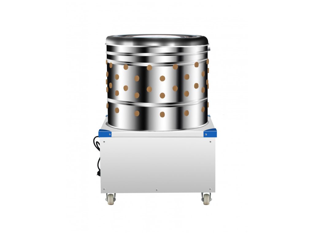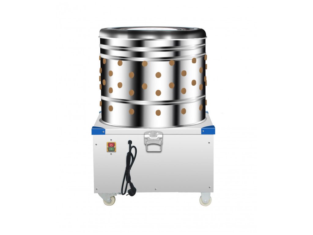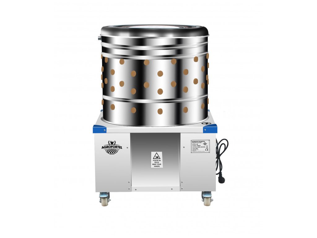 Nabízíme vám výbornou elektrickou bubnovou škubačku na drůbež - kuřata, kachny, husy atd. Ideální váha je do 18 kg. JEDNÁ SE O ALTERNATIVU K MODELU BRM1800 od značky AGROFORTEL. Škubačka je vybavena kvalitními gumovými škubacími prsty, které jsou vyměnitelné. Jádrem škubačky je motor 2HP s výkonem 1500 W. Škubačka vám opravdu dokonale oškube veškerou spařenou drůbež a stane se tak vaším dlouholetým pomocníkem. Škubačka je vyrobena z kvalitní nerezové oceli, která se snadno čistí. Jako ochranu proti úrazu má na rozích krytky. Do škubačky můžete zapojit hadici pro snadné odplavování peří. Škubačka je vhodná pro domácí použití.