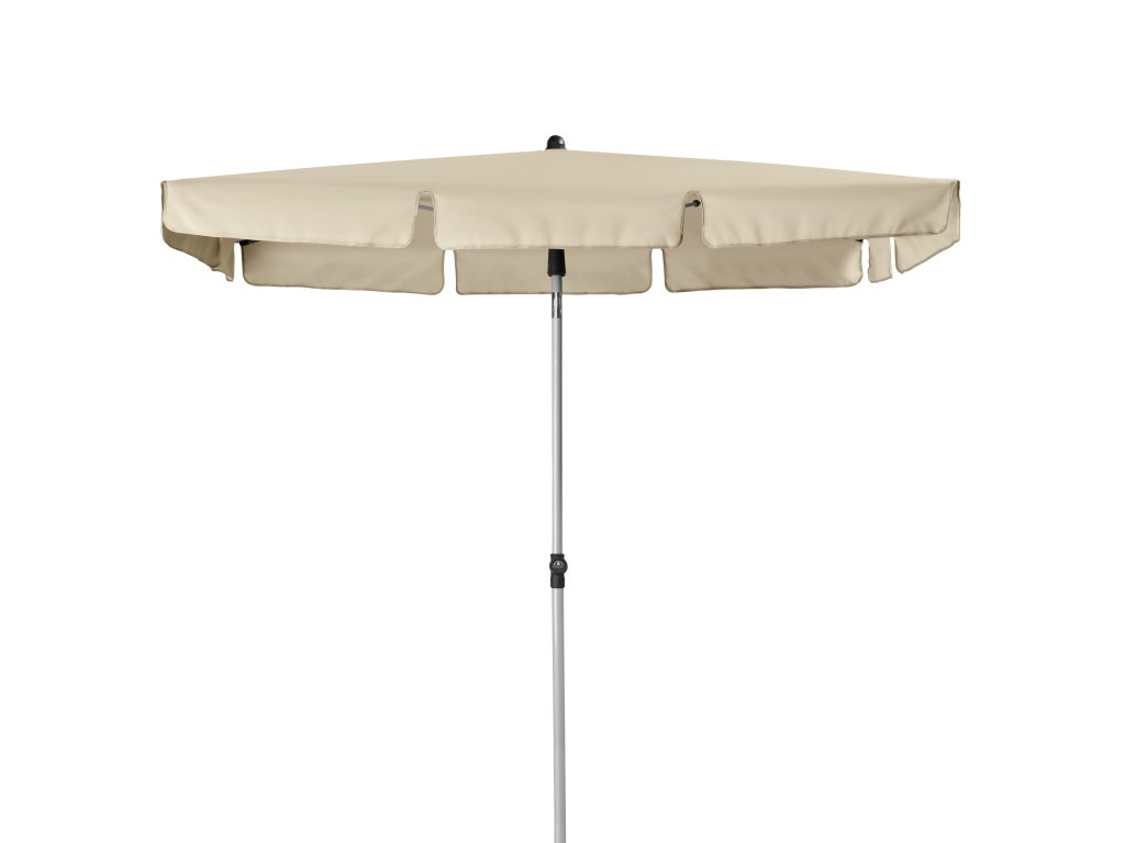 Tento slunečník je ideální na balkón či terasu. Snadné a pohodlné otevření a zavření slunečníku s ocelovým rámem ve stříbrné barvě. Komfortní funkce dvoustranného naklápění umožňuje naklopení střechy s dostatečnou ochranu proti slunci. Nepromokavý polyesterový potah má provedení s volánem a je odolný povětrnostným vlivům. Potah je k dispozici v různých barvách a má dobrou ochranu před UV zářením 50+.