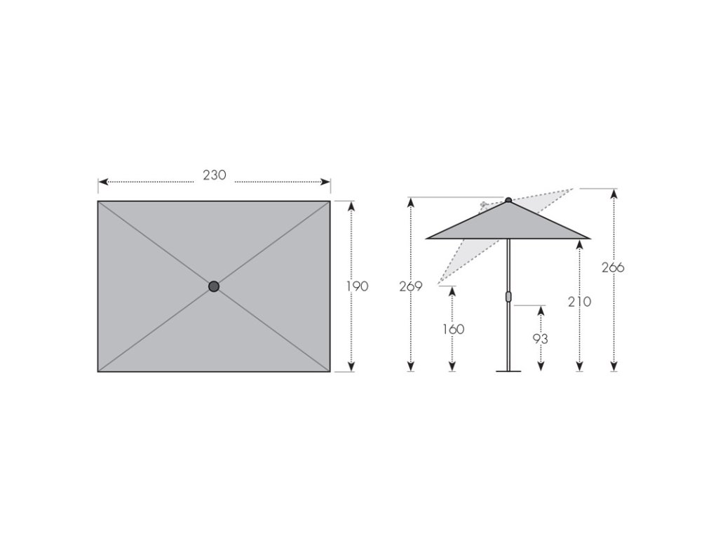Tento slunečník je ideální na balkón či terasu. Snadné a pohodlné otevření a zavření slunečníku s ocelovým rámem v antracitové barvě s epoxidovou povrchovou úpravou. Komfortní funkce naklápění umožňuje naklopení střechy s dostatečnou ochranu proti slunci. Nepromokavý polyesterový potah beze švů je odolný povětrnostným vlivům. Potah je k dispozici v různých barvách a má výbornou ochranu před UV zářením 80+. Velikost je přizpůsobena pivním setům s šíří stolu 70-80 cm.