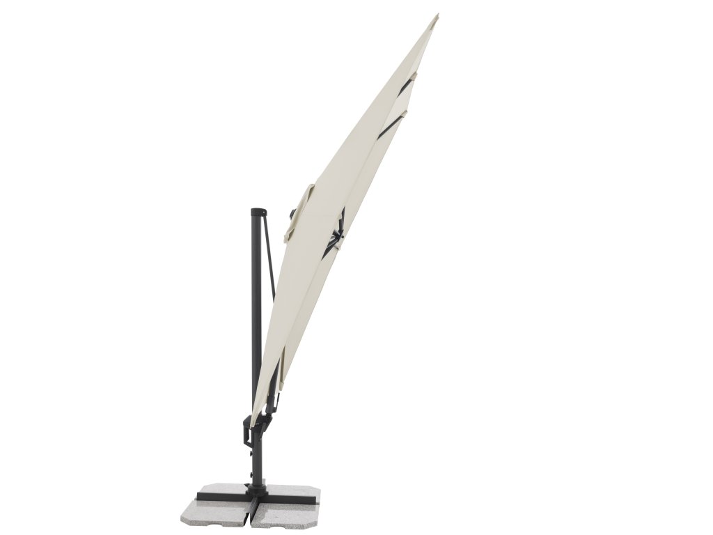 Tento slunečník ACTIVE z kolecke GREEN EDITION s boční nohou je ideální na balkón či terasu. Snadné a pohodlné otevření a zavření slunečníku s hliníkovým rámem díky kličkovému mechanismu. Dá se přizpůsobit pohybu slunce během dne, otáčí se o 360°, naklápí se axiálně na obě strany a může být nastaven pod úhlem dozadu a tak se optimálně přizpůsobuje pohybu slunce. Nepromokavý polyesterový potah beze švů je odolný povětrnostným vlivům. Potah je k dispozici v různých barvách a má výbornou ochranu před UV zářením 50+.