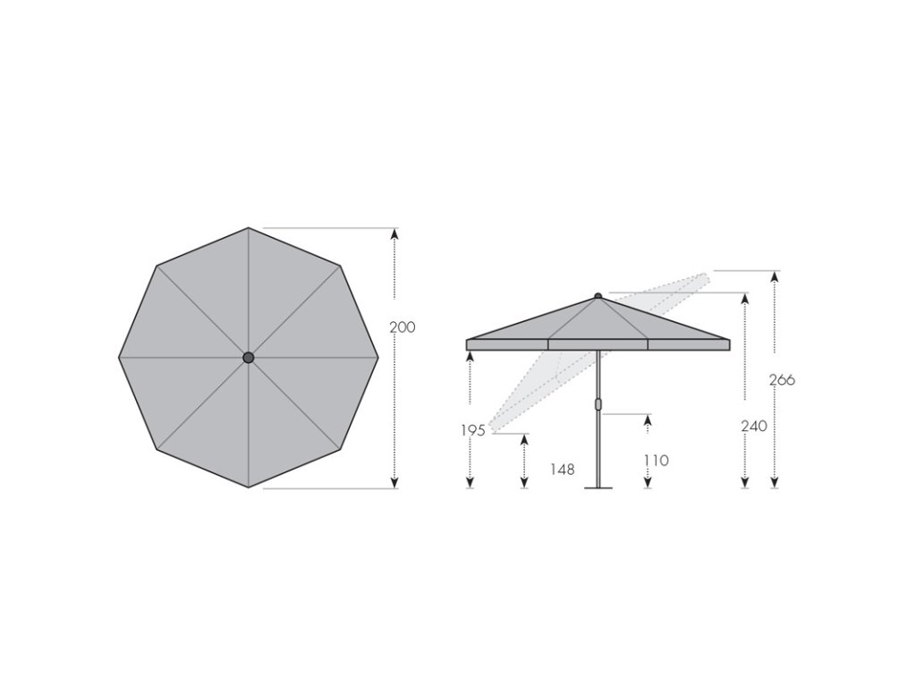 Tento slunečník je ideálním společníkem na balkón či terasu. Rám slunečníku je vyroben z oceli v antracitové barvě s epoxidovou povrchovou úpravou. Komfortní funkce naklápění umožňuje naklopení střechy. Potah je vyroben s kvalitním nepromokavým polyesterovým potahem beze švů, provedení, který je odolný povětrnostním vlivům s dobrou UV ochranou 50+. Je taktéž vhodný pro gastro ztařízení. Dostupný v řade barevných variant.