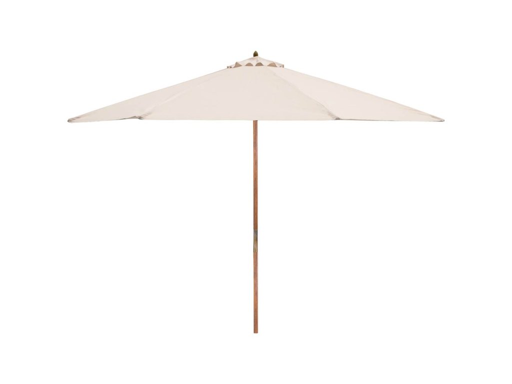 Slunečník je potažen krycí tkaninou v krémové barvě ze 100 % polyesteru s voděodolnou impregnací.