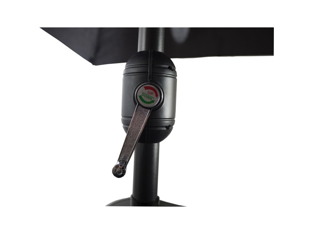 Slunečník o průměru 3 m v černé barvě je ideální volbou pro ochranu před letními slunečními paprsky. Slunečník se rozkládá i skládá pomocí kličky. Možnost nastavení úhlu stínění umožňuje pohodlné posezení v kteroukoliv denní dobu. Slunečník je potažen krycí tkaninou v černé barvě ze 100 % polyesteru s voděodolnou impregnací.