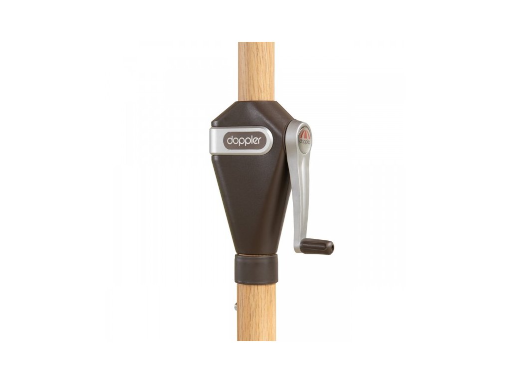 Naklápěcí klika, kterou snadno otevřete slunečník a zároveň slouží k naklápění slunečníku bez nutnosti vstávání od stolu.