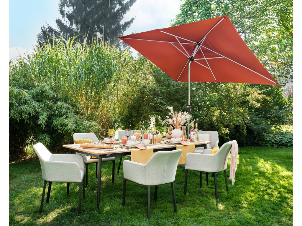 Moderní slunečník Doppler ACTIVE 200 x 300 cm s automatickým naklápěním klikou umožňuje automatické naklopení střechy pouhým otočením kliky. Potah slunečníku je vyroben z polyesterové tkaniny odolné proti povětrnostním vlivům s dobrou světelnou stálostí a dobrou UV ochranou 50+ .Kromě toho je potah snímatelný a je ho možno prát v ruce. Moderní barvy tohoto slunečníku zpříjemní váš život na zahradě nebo na vaší terase.