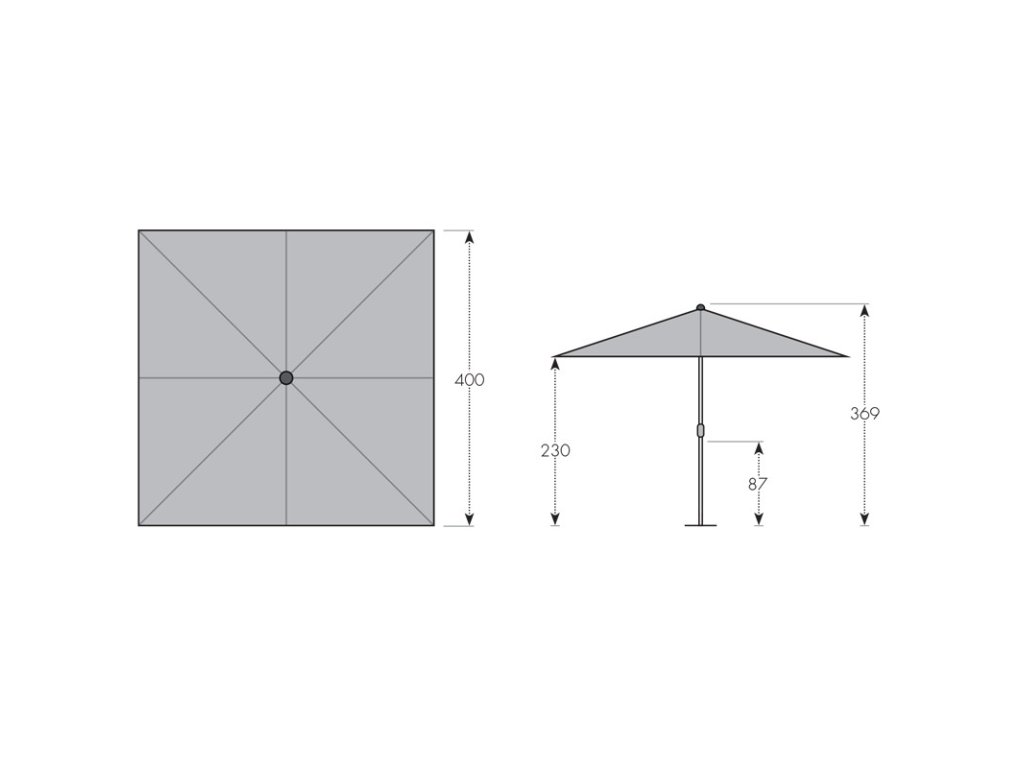 - celková výška otevřeného slunečníku: 369 cm