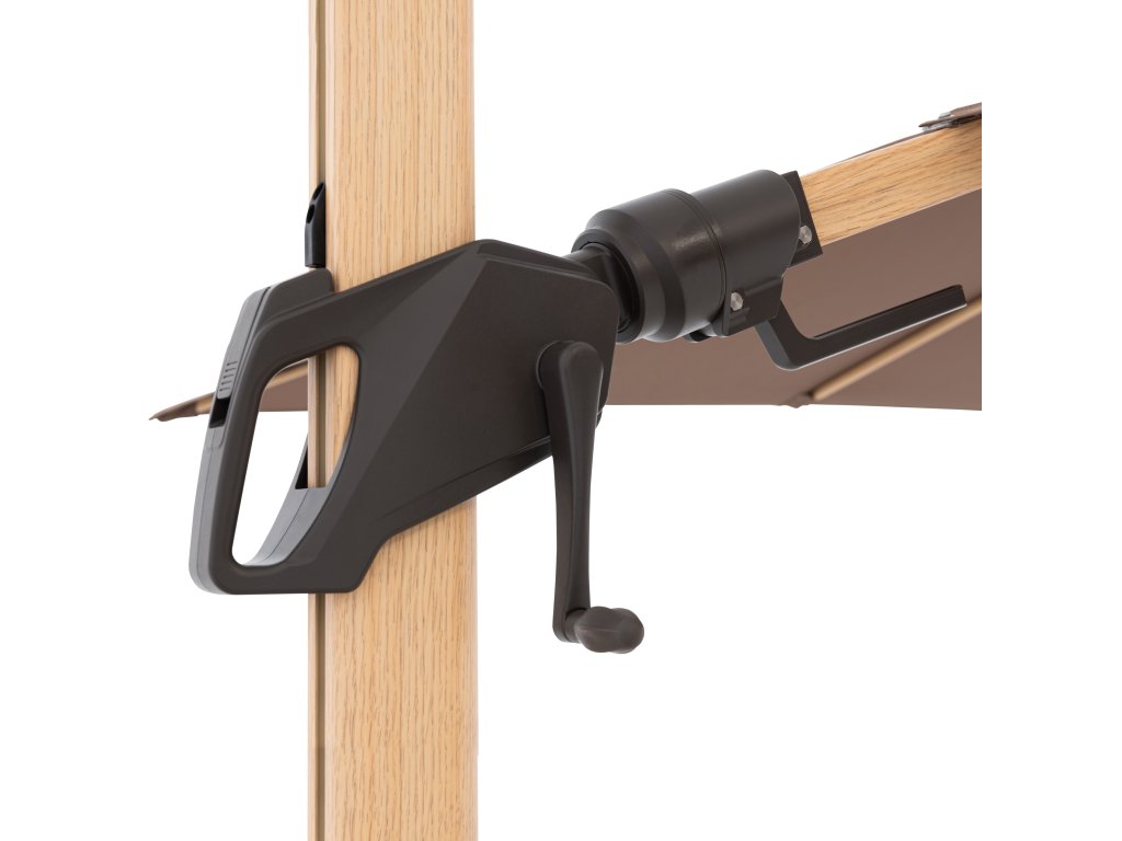 Naklápěcí klika, kterou snadno otevřete slunečník a zároveň slouží k naklápění slunečníku bez nutnosti vstávání od stolu.