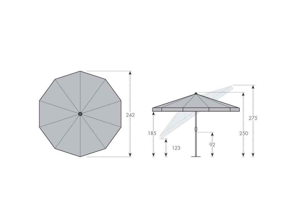 Slunečník Doppler Nassau 3,5 m je ideálním společníkem na balkón či terasu. Rám slunečníku je vyroben z oceli v antracitové barvě s epoxidovou povrchovou úpravou. Komfortní funkce naklápění umožňuje naklopení střechy. Potah je vyroben s kvalitním nepromokavým polyesterovým potahem beze švů v provedení, které je odolný povětrnostním vlivům s dobrou UV ochranou 50+ . Vhodný je také pro gastro ztařízení.