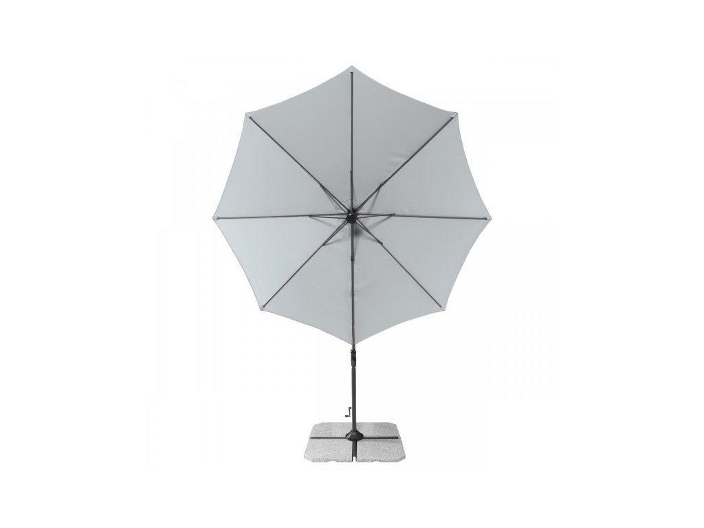 Ravenna Smart 300 cm Funkční slunečník Ravenna Smart 300 cm je vybavena klikovým mechanismem a je snadno ovladatelný. Potah slunečníku je vyroben z polyesterové tkaniny, je vodoodpudivý a má dobrou UV ochranu SPF 50 plus . Slunečník je otočný o 360 °, je možné ho naklápět v šesti pozicích a je dodáván se stojanem pro 4 ks desek 50x50x4 cm (bez desek 50x50x4 cm). Všeobecné informace:• Velikost slunečníku cca 300 cm• Kruhový tvar střechy• Včetně základního kříže pro desky o rozměrech 50x50x4 cm (Pozor: desky musí být objednány samostatně)• Doporučené zatížení nejméně 100 kg• Podchozí výška: cca 215 cm• Celková výška otevřeného slunečníku: cca 244 cm• Výškově nastavitelný: ne• 6 pozic náklonu (sklonu podél stožáru)• otočný klikou o 360 ° • Rozteč otvorů k uchycení (meřeno přes střed): 160 mm• Velikost balení: cca 194 x 34,5 x 16 cm• Váha balení: cca 13,8 Kg Rám:• Průměr tyče: 56x40 mm• Hliníkový rám• Ocelové vzpěry• Klikový mechanismus Potah:• 100procent polyester 180 g / m2• SPF 50 plus • Stálobarevnost 5 plus • Odolný proti dešti• K dispozici v různých barvách• Snímatelný potah / ruční praní Možnosti montáže a) Instalace na zemní kotvu art.č. 85999BRUN b) Instalace na žulový sokl s kolečky 140 kg art.č. 85897GPZ (možné pouze v kombinaci s adaptérovou deskou art.č. 85999A12_16) c) Instalace pomocí plnitelných dlaždic 4-dílný set (140kg) art.č. 85499BP35Doplňkové parametry