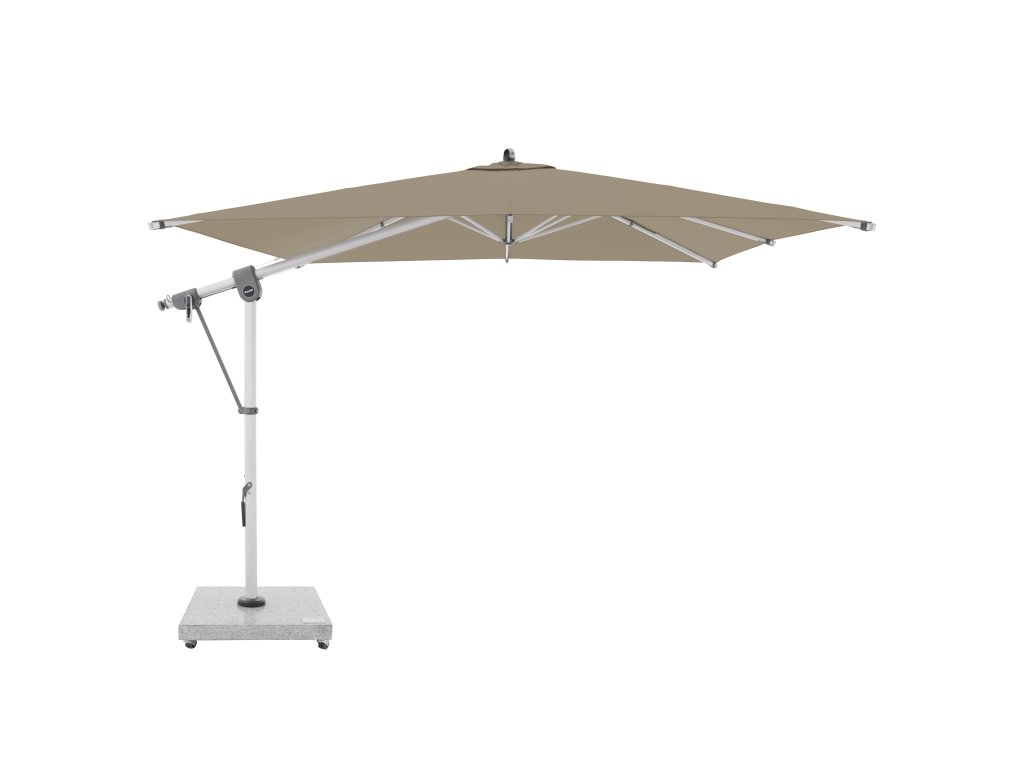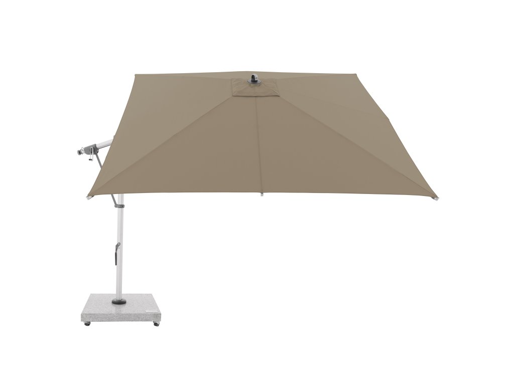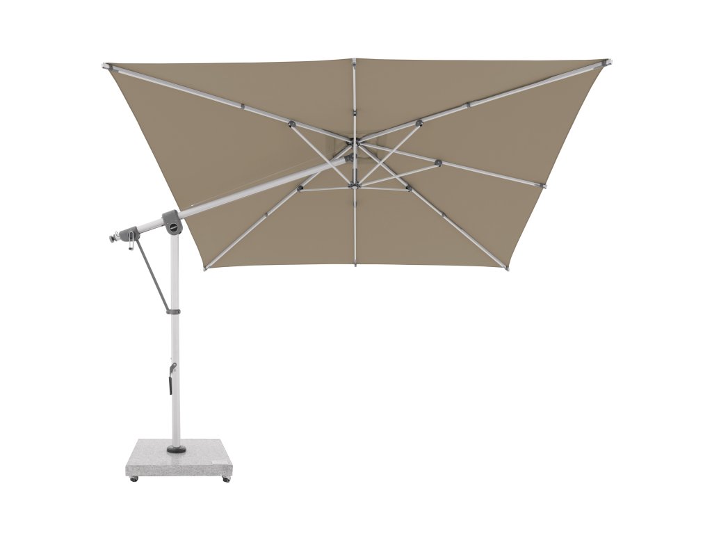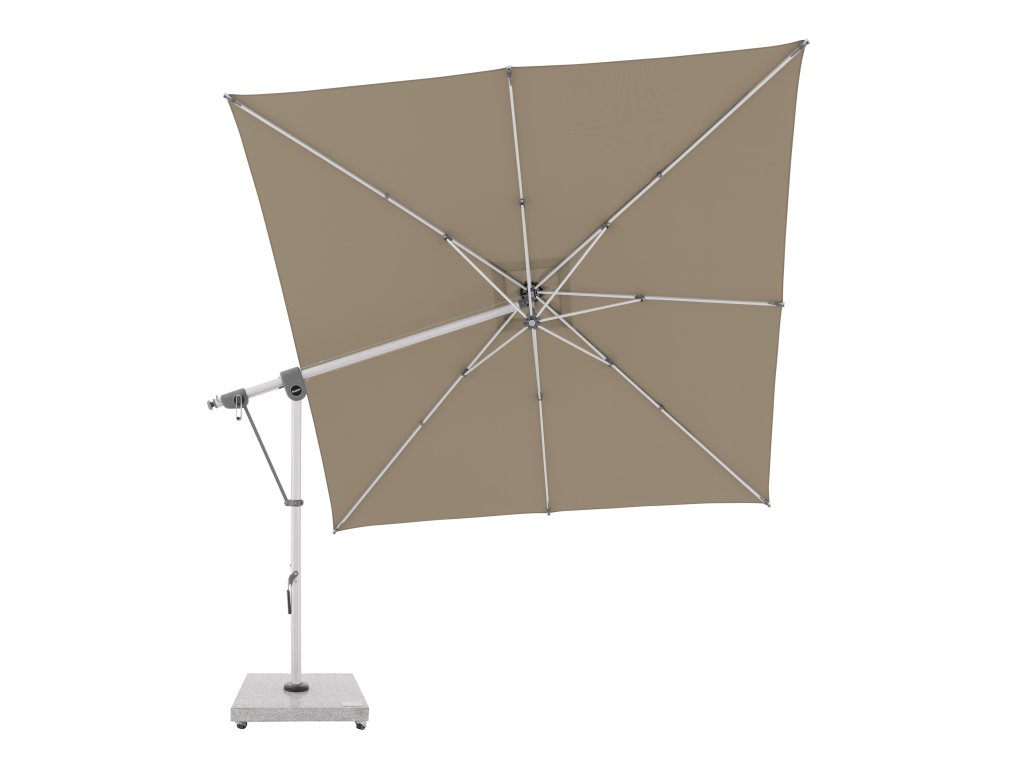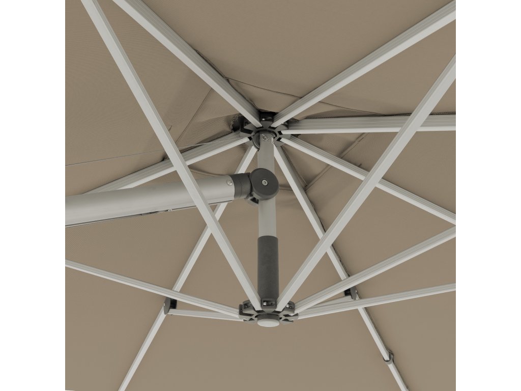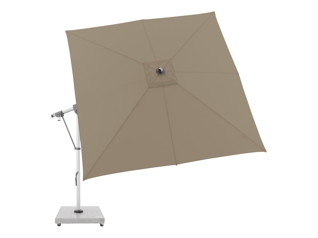 Tento multifunkční výkyvný slunečník s boční tyčí Doppler Expert 3 x 3 m lze optimálně přizpůsobit poloze slunce díky své schopnosti otáčení o 360° a oboustrannému bočnímu naklápění střechy. Konstrukce je vyrobena z vysoce jakostního hliníku a všechny díly jsou šroubované. Potah je vyroben z polyesterové tkaniny odpuzující vodu s dobrou UV ochranou 80+. Potah je snímatelný, s možností ručního praní. Vodoodpudivý potah je s impregnací proti špíně a plísni včetně ochranného obalu, který chrání slunečník před nepřízní počasí. Instalace na žulový sokl nebo zemní kotvu.