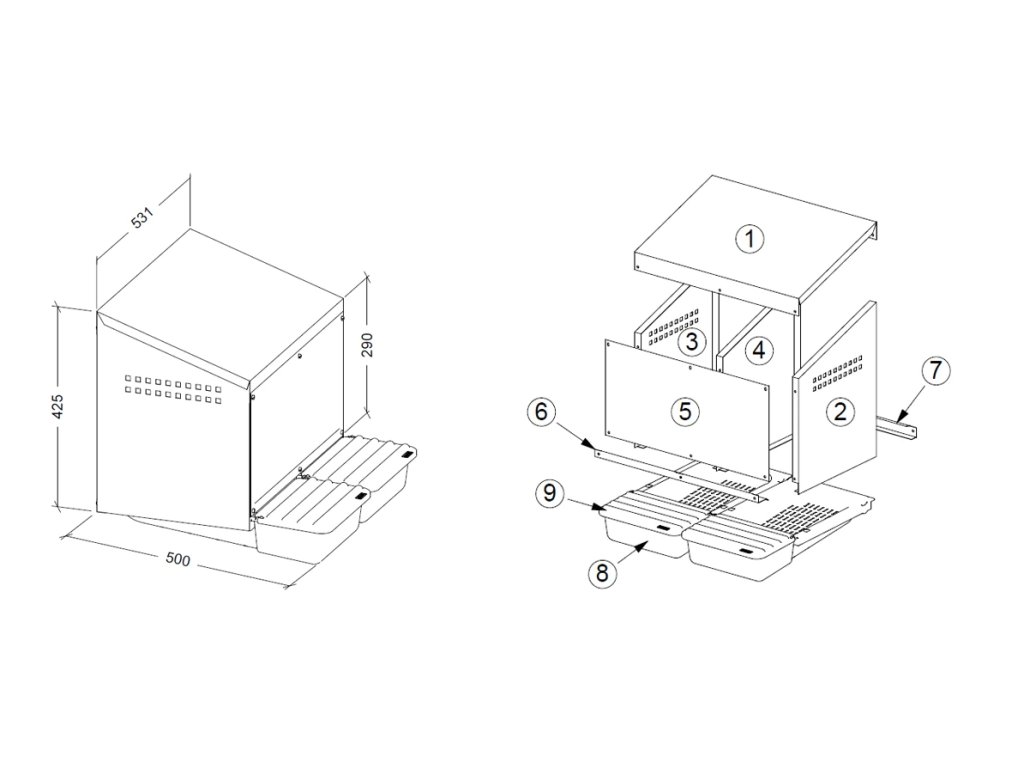 Snáškové hnízdo pro slepice GAUN 10119 venkovní 2-místné, se sběrným košem
