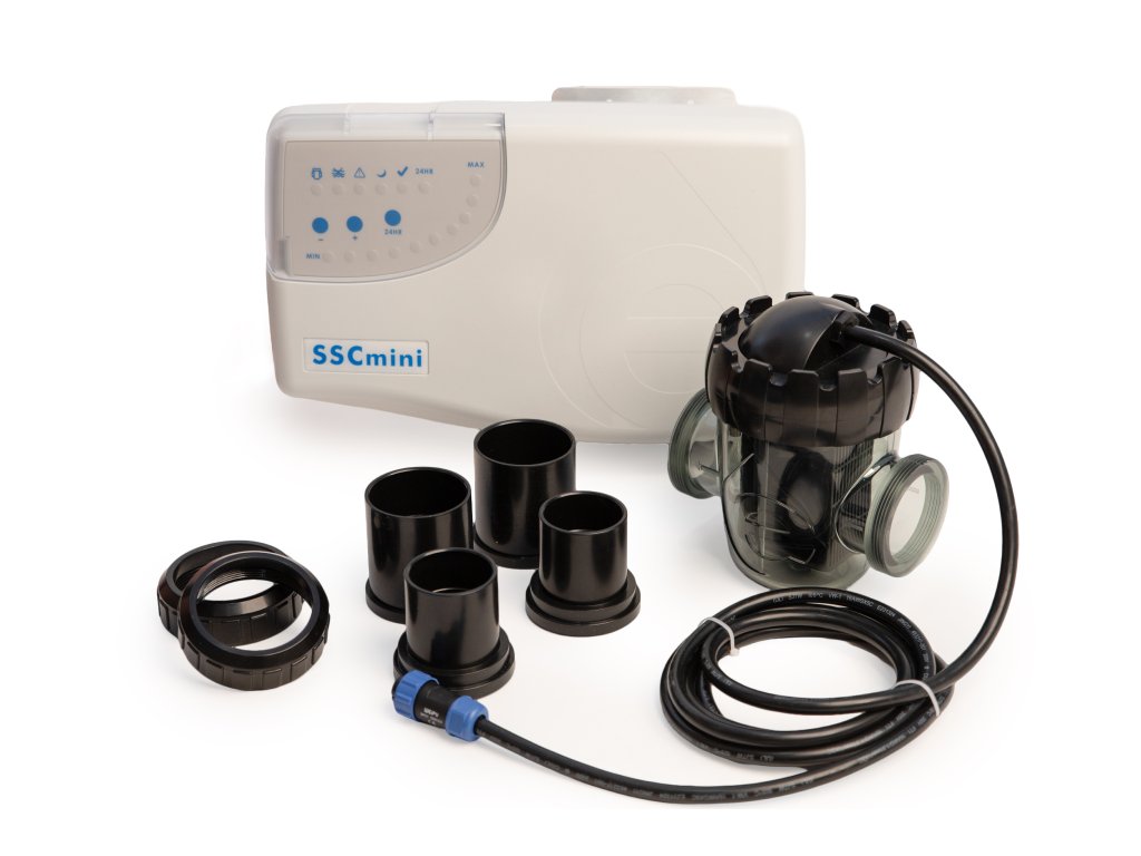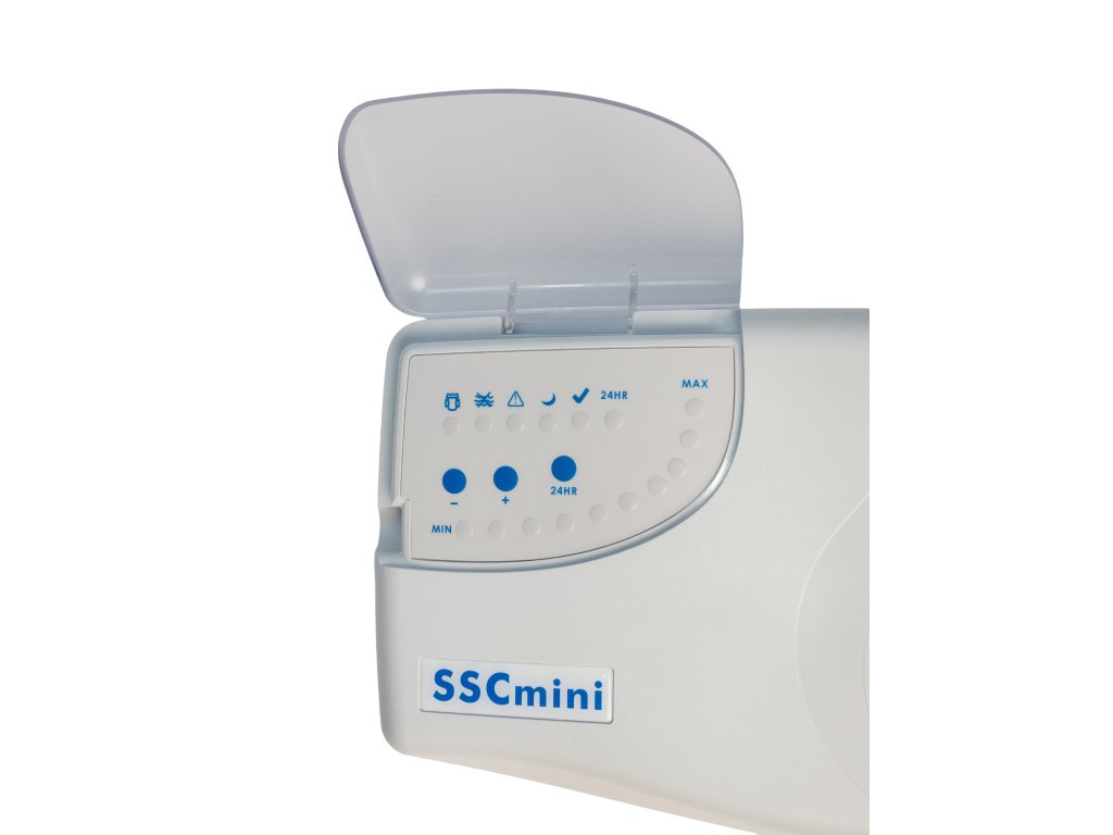 SolinátorSSCmini je určený pro dezinfekci bazénové vody do 90 m3 ve vnitřních i venkovních bazénech.Solinátor eletrolýzou rozkládá sůl, čímž dezinfikuje vodu. Je šetrný k pokožce a vhodný pro alergiky a děti. Navíc bazénová voda není cítit po chlóru. Zařízení se skládá z řídící jednotky a elektrolytické cely. Řídicí jednotka je vybavena mikroprocesorem k regulaci doby provozu a informování o stavu a chybách provozu solinátoru. Elektrolytická cela je vybavena samočistící funkcí, která zabrání usazování vodního kamene na elektrodách. Cela je připravena k přímé instalaci na potrubí. Solinátor obsahuje průtokovou klapku a senzor teploty. Díky použití solinátoru eliminujete nutnost přidávat do bazénové vody jiné dezinfekční chemické přípravky. Dávkování - 3-4 kg soli na 1 m3 vody. Je-li potřeba sůl doplnit, na dávkovači se rozsvítí kontrolka. Připojení na potrubí pr. 50 mm a 63 mm. Specifikace: Hodnota standardního el. napětí:220-240V – 50/60Hz Maximální hodnota vyprodukovaného chloru:20g/h Maximální objem bazénu:90 m3 Optimální slanost vody:3-4g/l (3-4kg/m3) Provozní teplota vody:10°C - 45°C Elektrody:titanové plátyDoplňkové parametry