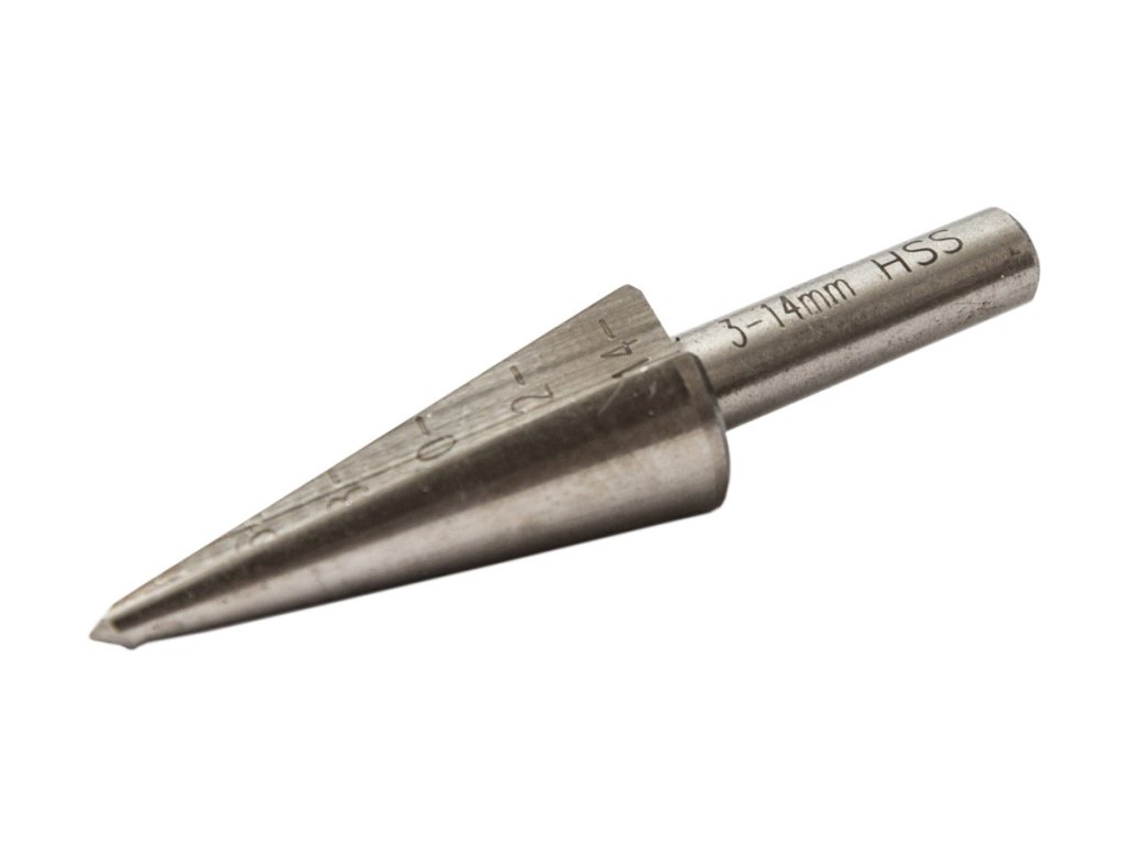 Pro spolehlivé předvrtání otvorů v plastových krytinách, bez rizika jejich poškození a štěpení. Vrták je vyroben z rychlořezné oceli se 2 řeznými břity a přímou drážkou. Kónický vrták HSS umožňuje plynulé vrtání plastových krytin, obsahuje rytinu pro velikost otvoru 3 - 14 mm.
