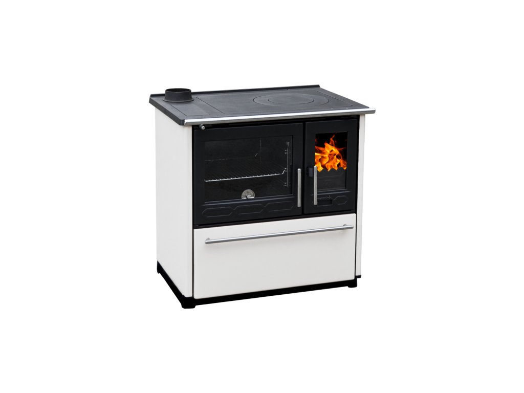 Sporák na pevná paliva Plamen 850 GLAS levý - bílý
