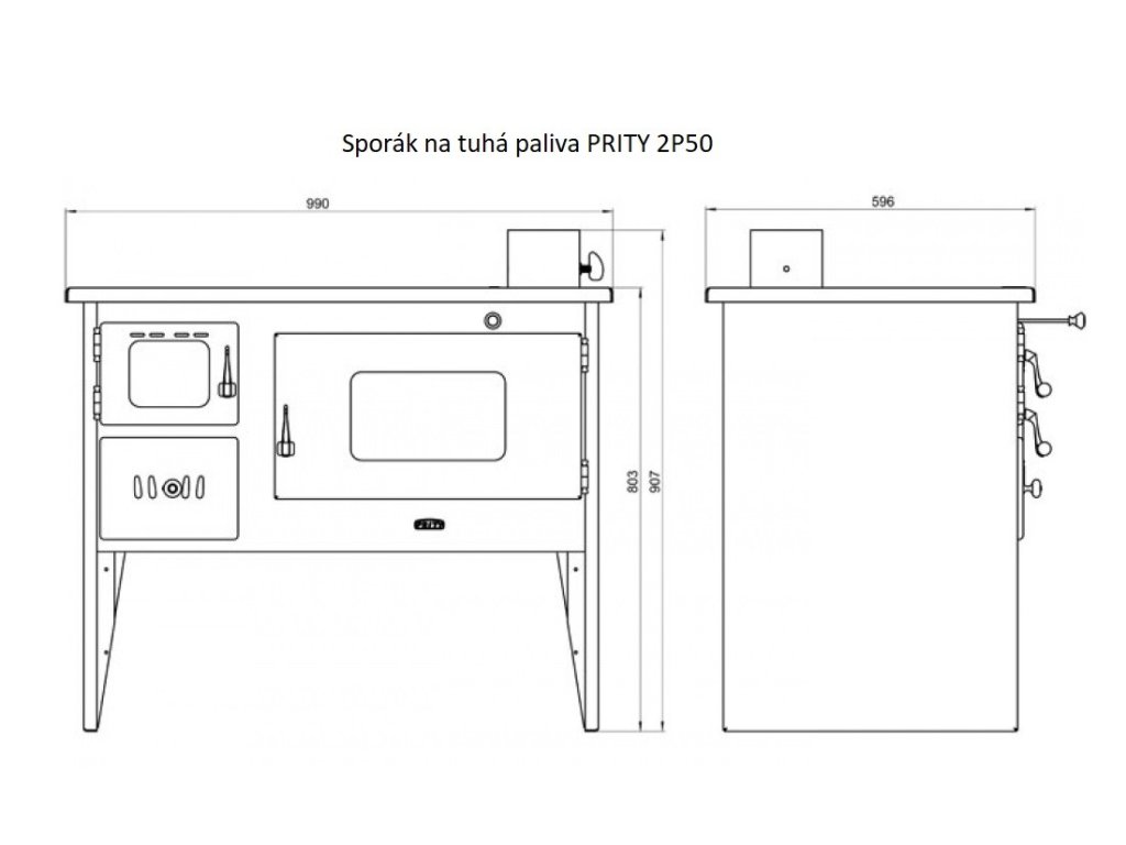Sporák na tuhá paliva PRITY 2P50, pravá