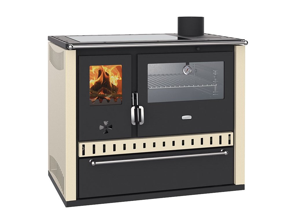 Sporáky na tuhá paliva jsou tu pro všechny ty, kteří nechtějí či nemohou vařit na plynovém nebo indukčním sporáku. Jednoduše zatopíte a začnete vařit. Kuchyňský sporák PRITY GT FI G DR v barvě slonová kost, má vpravo umístěnou prosklenou, nerezovou pečící troubu s teploměrem. V horní části nahradila klasický tal moderní sklokeramická deska. Ozdobná přední madla a výrazná madla dvířek dodají kamnům luxusní vzhled. Jednoduchý styl, nenáročná obsluha a údržba - to jsou kamna Prity.