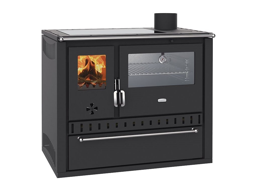 Sporáky na tuhá paliva jsou tu pro všechny ty, kteří nechtějí či nemohou vařit na plynovém nebo indukčním sporáku. Jednoduše zatopíte a začnete vařit. Kuchyňský sporák PRITY GT W10 FI G DR v černé barvě, má vpravo umístěnou prosklenou, nerezovou pečící troubu s teploměrem. V horní části nahradila klasický tal moderní sklokeramická deska. Ozdobné přední madlo a výrazná madla dvířek dodají kamnům luxusní vzhled. Jednoduchý styl, nenáročná obsluha a údržba - to jsou kamna Prity.