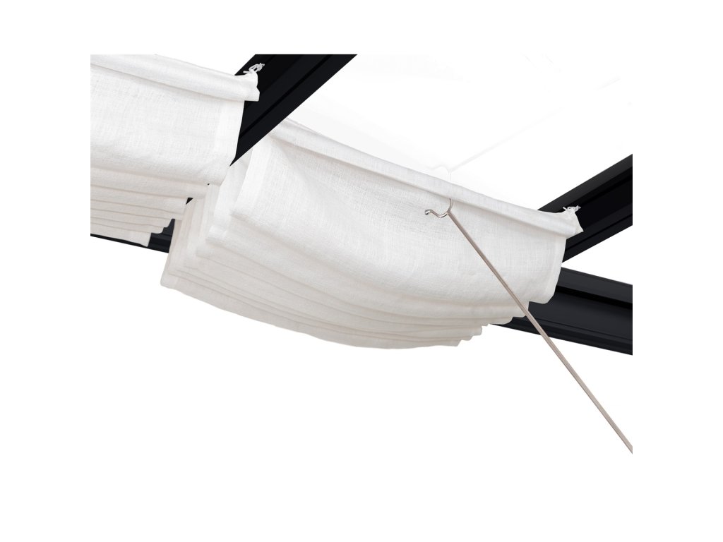 Praktická bílá vícedílná zatahovací zástěna, která se snadno instaluje do drážek profilů pod střechu. V případě slunečného počasí účinně chrání před přílišným přehříváním interiéru.