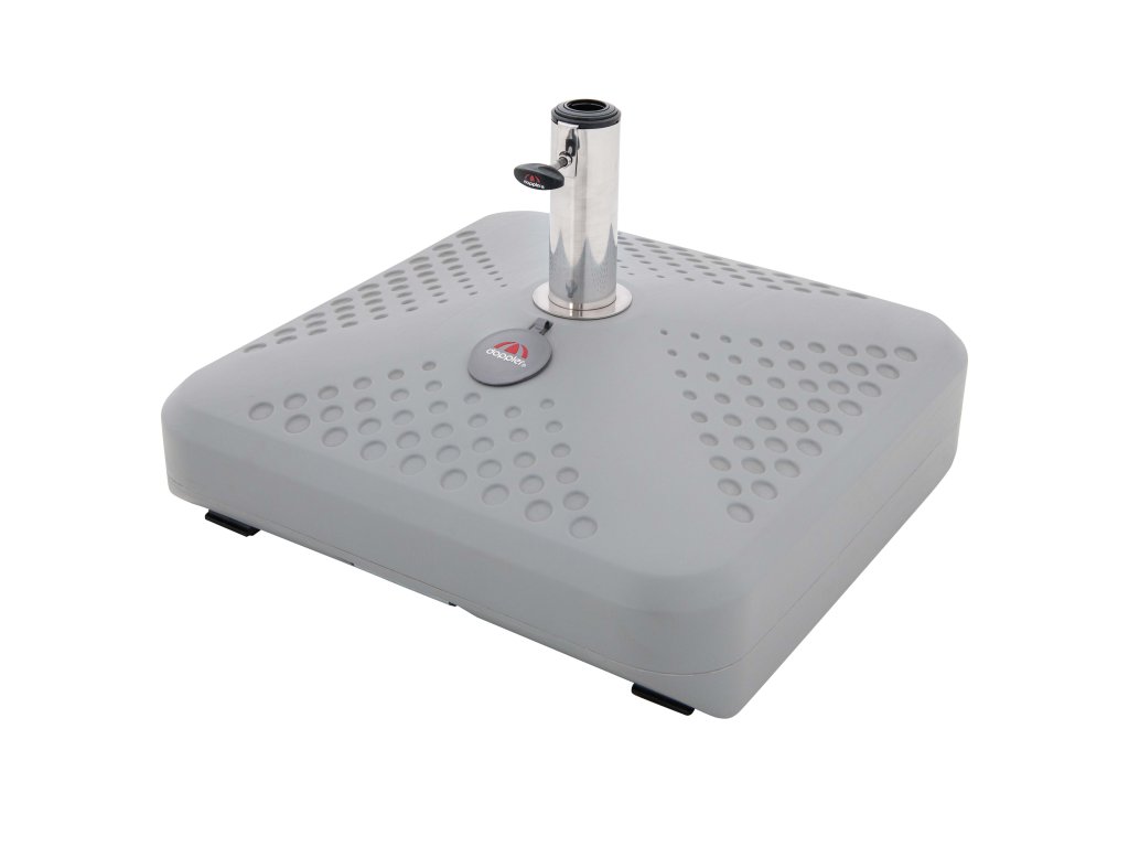 Podstavec je možné plnit vodou nebo pískem, případně obojím dohromady – při naplnění vodou se váha stojanu pohybuje okolo 50 kg, při zatížení pískem je to cca 68 kg a kombinací obojího je možné dosáhnout zatížení až 85 kg. Jedinečné přizpůsobivé vlastnosti stojanu Active Vám tak umožňují najít to optimální řešení pro váš slunečník.