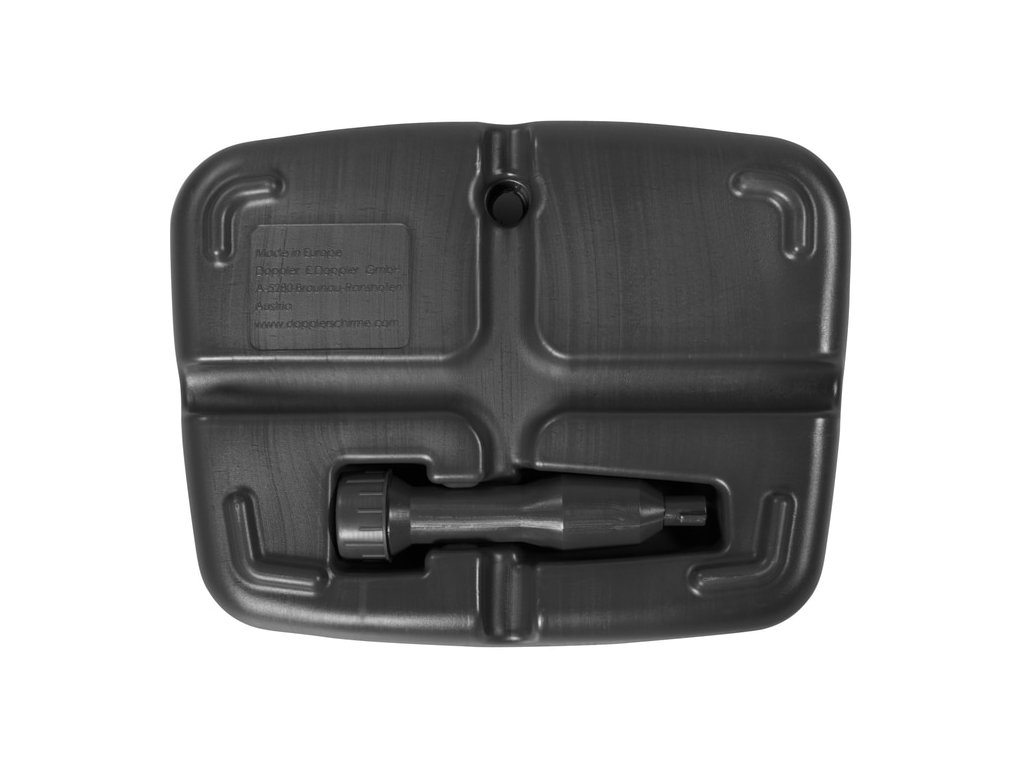 Doppler balkon PE výplňový podstavec 17 l - vhodný pro slunečníky do cca 180 cm. Plnicí základna z PE o objemu 17 litrů je ideální pro menší slunečníky na vašem balkoně nebo střešní terase a díky malé kapacitě se snadno přemisťuje, i když je plná. Pro zajištění optimální stability doporučujeme naplnit základnu vodou nebo pískem.