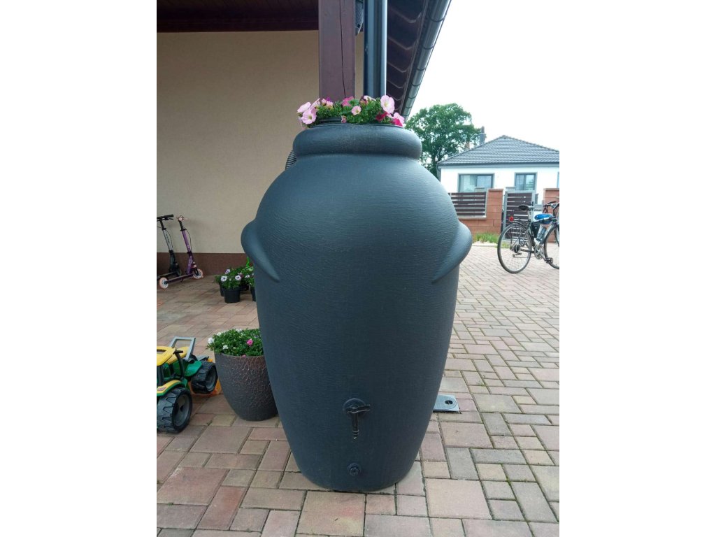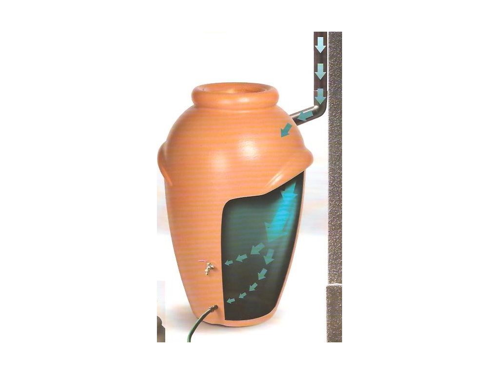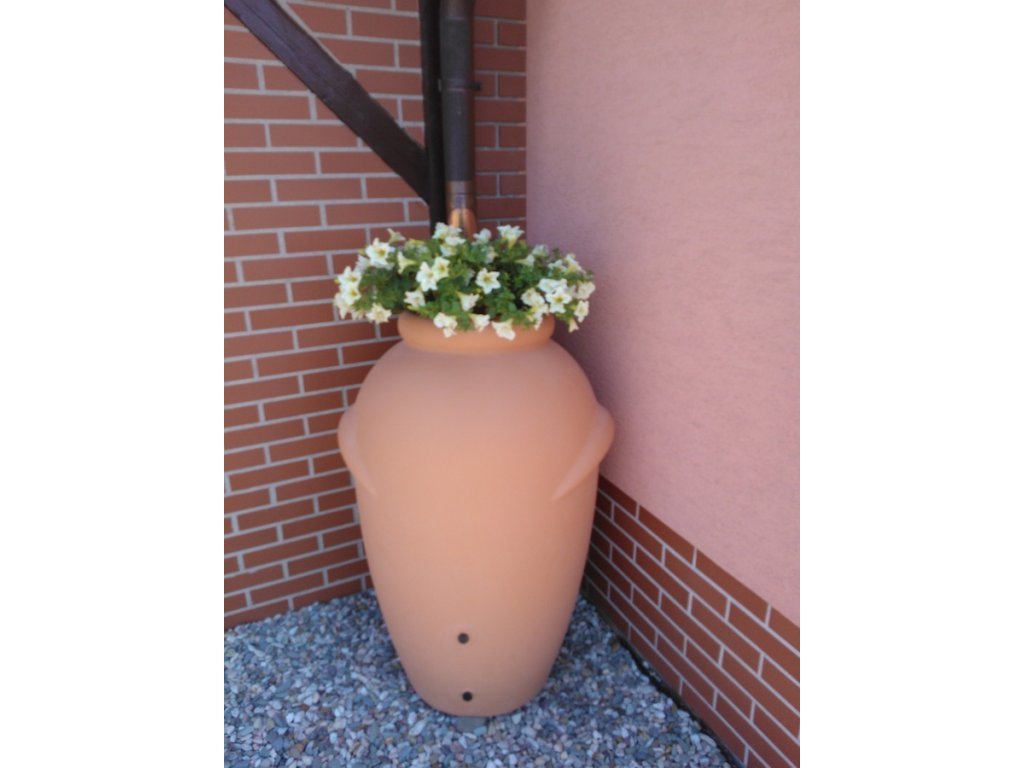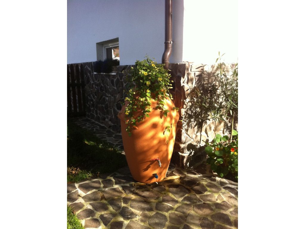 Tvar a konstrukce nádrže je inspirována modelem starověké amfory, kterou se tak nemusíte stydět umístit na viditelné místo vaší zahrady. Nádoba na dešťovou vodu je vyrobena z kvalitního plastu, který je odolný vůči povětrnostním vlivům. Největší předností této nádrže na vodu je její elegantní provedení, použité kvalitní materiály a především její praktičnost. Nádrž je ve své spodní části vybavena dvěma otvory pro výpust vody. Jedna je určena pro napojení kohoutku, ta kousek od země poté na napojení hadice na vodu.