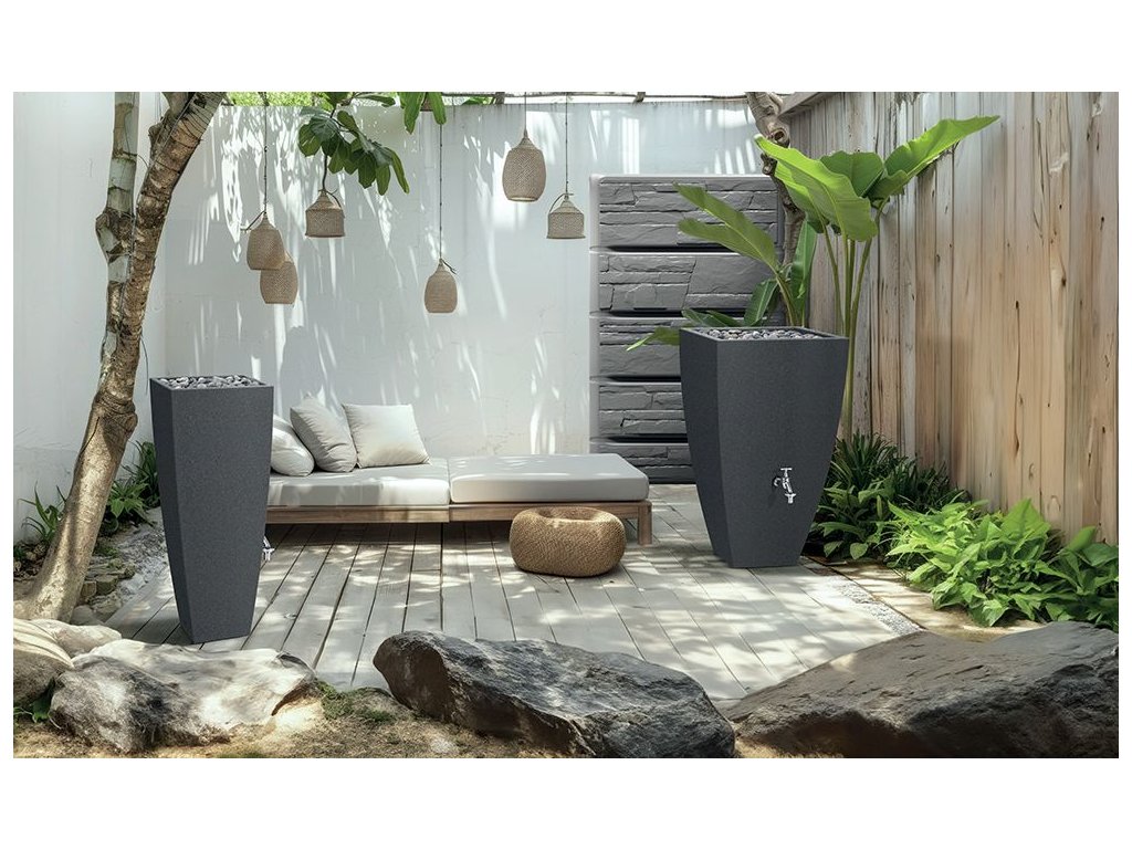 Udělejte ze sběru dešťové vody krásný prvek vaší zahrady! Nádrž na dešťovou vodu Modena 350 l v antracitové barvě spojuje praktičnost s jemným designem připomínajícím květináč, který se snadno stane ozdobou vaší zahrady. S objemem až 350 l nabízí dostatek vody pro zalévání či další venkovní aktivity, aniž by zabírala příliš mnoho místa. Rozměry (69 × 69 × 121,5 cm) ji činí ideální pro menší zahrady, terasy či dvory.