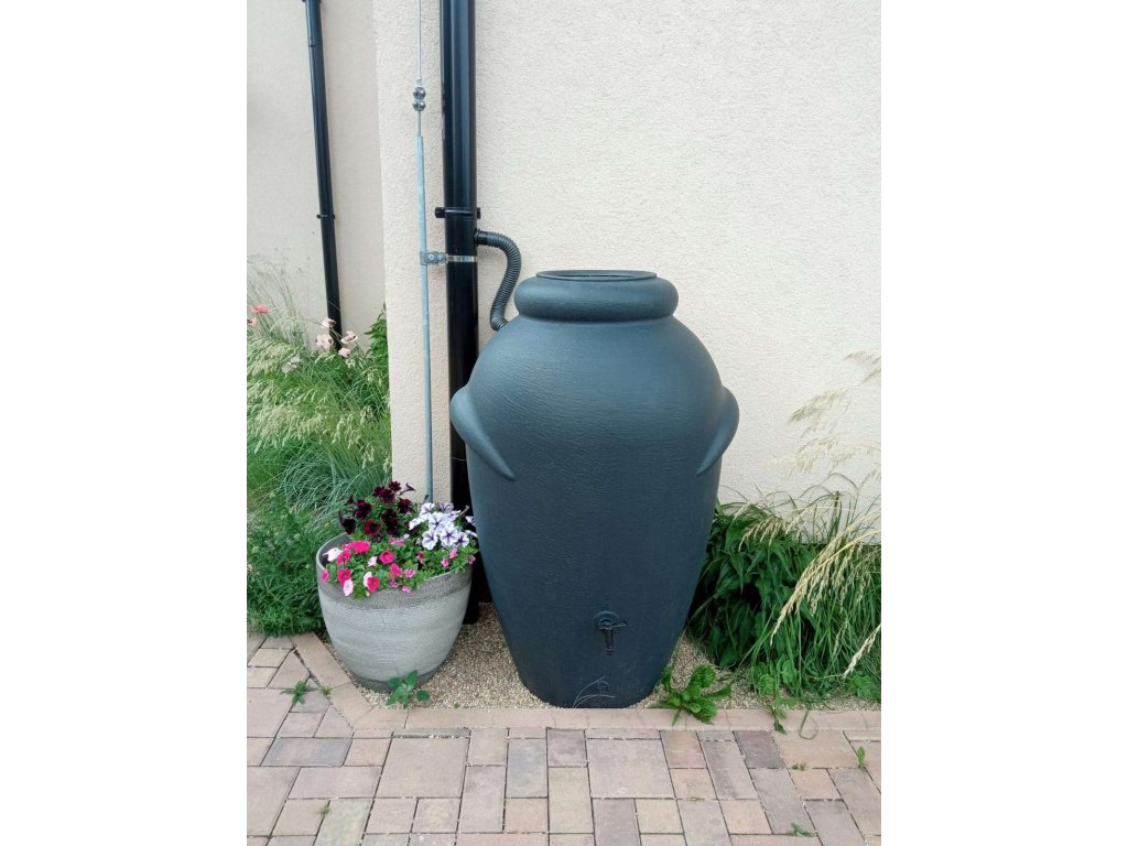 Tvar a konstrukce nádrže je inspirována modelem starověké amfory, kterou se tak nemusíte stydět umístit na viditelné místo vaší zahrady. Nádoba na dešťovou vodu je vyrobena z kvalitního plastu, který je odolný vůči povětrnostním vlivům. Největší předností této nádrže na vodu je její elegantní provedení, použité kvalitní materiály a především její praktičnost. Nádrž je ve své spodní části vybavena dvěma otvory pro výpust vody. Jedna je určena pro napojení kohoutku, ta kousek od země poté na napojení hadice na vodu.