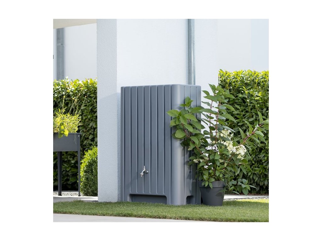 Elegantní nádrž na dešťovou vodu BARLETTA o objemu 280 litrů v světle šedé barvě může být jednou ze součástí vašeho integrovaného systému úspory vody. Díky dešťové vodě je zalévání zahrady mnohem ekonomičtější a pro rostliny, jak okrasné a užitkové i prospěšnější. Díky obsahu dusíku ve vodě se tento prvek dostává k rostlinám pro ně přirozenou formou. Dešťová voda neobsahuje chlór, žádné soli vápníku a hořčíku, což jsou chemické látky, které způsobují trvalou nebo dočasnou tvrdost vody. I proto je vhodná pro kapkové závlahy, které se nezanášejí a lépe fungují.