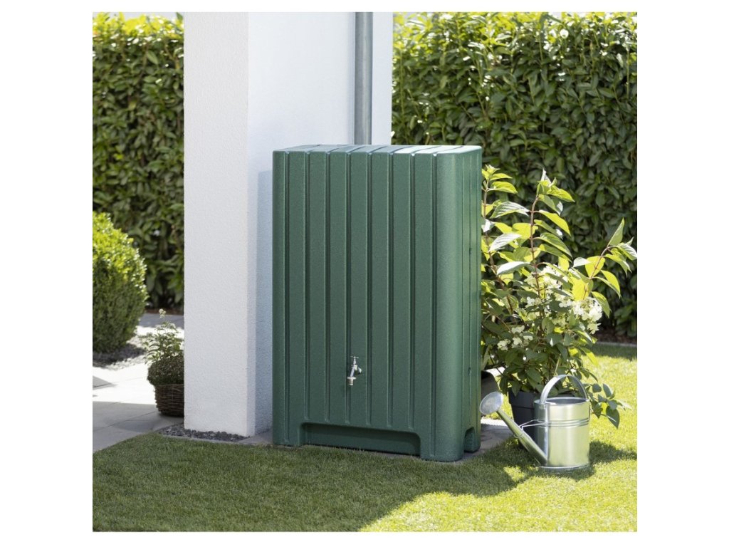 Elegantní nádrž na dešťovou vodu BARLETTA o objemu 280 litrů v barvě zeleného granitu může být jednou ze součástí vašeho integrovaného systému úspory vody. Díky dešťové vodě je zalévání zahrady mnohem ekonomičtější a pro rostliny, jak okrasné a užitkové i prospěšnější. Díky obsahu dusíku ve vodě se tento prvek dostává k rostlinám pro ně přirozenou formou. Dešťová voda neobsahuje chlór, žádné soli vápníku a hořčíku, což jsou chemické látky, které způsobují trvalou nebo dočasnou tvrdost vody. I proto je vhodná pro kapkové závlahy, které se nezanášejí a lépe fungují.