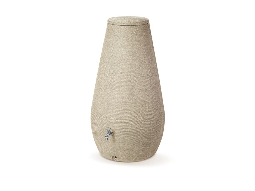 Elegantní nádrž na dešťovou vodu DROP o objemu 410 litrů v barvě slaměného granitu může být jednou ze součástí vašeho integrovaného systému úspory vody. Díky dešťové vodě je zalévání zahrady mnohem ekonomičtější a pro rostliny, jak okrasné a užitkové i prospěšnější. Díky obsahu dusíku ve vodě se tento prvek dostává k rostlinám pro ně přirozenou formou. Dešťová voda neobsahuje chlór, žádné soli vápníku a hořčíku, což jsou chemické látky, které způsobují trvalou nebo dočasnou tvrdost vody. I proto je vhodná pro kapkové závlahy, které se nezanášejí a lépe fungují.
