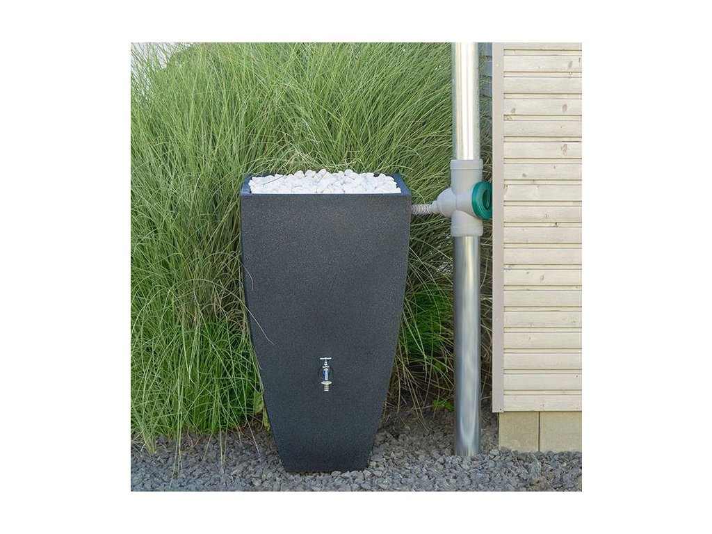 Moderní nádrž na dešťovou vodu Modena ve tvaru květináče je vyrobena z kvalitního plastu, který je odolný vůči povětrnostním vlivům. Největší předností této nádrže na vodu je její elegantní provedení, použité kvalitní materiály a především její praktičnost. V horní části je vkládací deska, ve které je namontován integrovaný filtrační koš. Pro hezčí vzhled lze stélku individuálně ozdobit štěrkem. Nádrž je ve spodní části je osazena otvorem s 3/4" mosazným závitem pro napojení kohoutku ITAP(není součástí balení). Nádrž lze plnit shora přes klasickou dešťovou klapku nebo z boku. Okap s nádrží lze jednoduše propojit pomocí spojovacího systému Waterform Icanset, který zakoupíte v našem e-shopu. Nádrž má také boční odtok kousek od země pro napojení hadice na vodu, nebo pro úplné vypuštění nádrže. Konstrukčně je tento typ sudu tzv. foukán, aby byl na rovném povrchu dobře stabilní a tudíž není potřeba podstavce. Povrchová úprava připomíná hladký beton, takže se snadno přizpůsobí fasádám moderních domů.