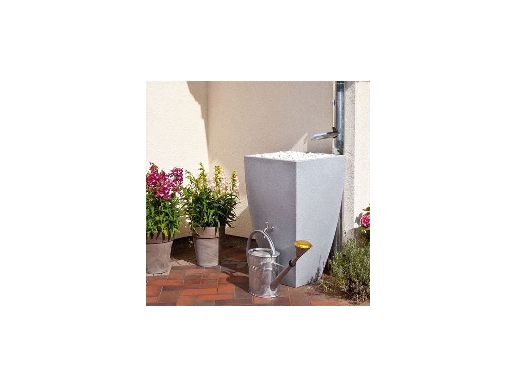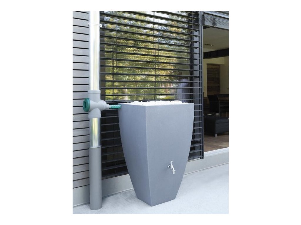 Moderní nádrž na dešťovou vodu Modena ve tvaru květináče je vyrobena z kvalitního plastu, který je odolný vůči povětrnostním vlivům. Největší předností této nádrže na vodu je její elegantní provedení, použité kvalitní materiály a především její praktičnost. V horní části je vkládací deska, ve které je namontován integrovaný filtrační koš. Pro hezčí vzhled lze stélku individuálně ozdobit štěrkem. Nádrž je ve spodní části je osazena otvorem s 3/4" mosazným závitem pro napojení kohoutku ITAP(není součástí balení). Nádrž lze plnit shora přes klasickou dešťovou klapku nebo z boku. Okap s nádrží lze jednoduše propojit pomocí spojovacího systému Waterform Icanset, který zakoupíte v našem e-shopu. Nádrž má také boční odtok kousek od země pro napojení hadice na vodu, nebo pro úplné vypuštění nádrže. Konstrukčně je tento typ sudu tzv. foukán, aby byl na rovném povrchu dobře stabilní a tudíž není potřeba podstavce. Povrchová úprava připomíná hladký beton, takže se snadno přizpůsobí fasádám moderních domů.