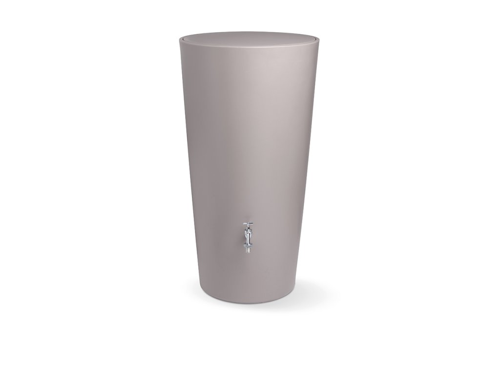 Moderní nádrž na dešťovou vodu Rainbowl ve tvaru vázy je vyrobena z kvalitního plastu, který je odolný vůči povětrnostním vlivům. Největší předností této nádrže na vodu je její elegantní provedení, použité kvalitní materiály a především její praktičnost. Nádrž je na víku vybavena dětskou pojistkou a ve své spodní části je osazena dvěma otvory s 3/4" mosazným závitem pro výpust vody. Jeden je určen pro napojení kohoutku ITAP, ten kousek od země poté na napojení hadice na vodu, nebo pro úplné vypuštění nádrže. Konstrukčně je tento typ sudu tzv. foukán, aby byl na rovném povrchu dobře stabilní a tudíž není potřeba podstavce. Povrchová úprava připomíná tmavě šedý beton, takže se snadno přizpůsobí fasádám moderních domů.