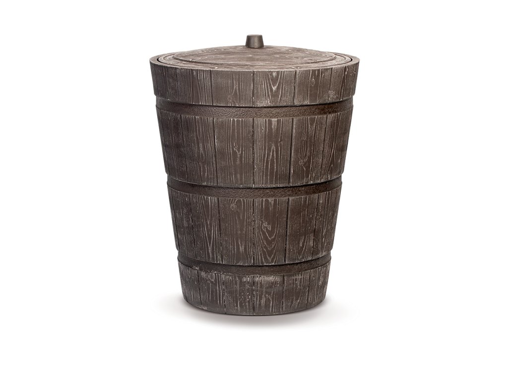 Moderní nádrž na dešťovou vodu Rustico je inspirována kresbou dřevěných sudů bavorského piva a je téměř nerozpoznatelná od skutečného dřeva. Nádrž je vyrobena z kvalitního plastu, který je odolný vůči povětrnostním vlivům. Největší předností této nádrže na vodu jsou použité kvalitní materiály a především její praktičnost. Nádrž je na odnímatelném víku vybavena dětskou pojistkou a ve své spodní části je osazena otvorem s 3/4" mosazným závitem pro napojení kohoutku ITAP(není součástí balení). Okap s nádrží lze jednoduše propojit pomocí spojovacího systému Waterform Icanset, který zakoupíte v našem e-shopu. Nádrž má také boční odtok kousek od země pro napojení hadice na vodu, nebo pro úplné vypuštění nádrže. Konstrukčně je tento typ sudu tzv. foukán, aby byl na rovném povrchu dobře stabilní a tudíž není potřeba podstavce. Perfektně se hodí do míst, kde dominuje rustikální vzhled zahrady.
