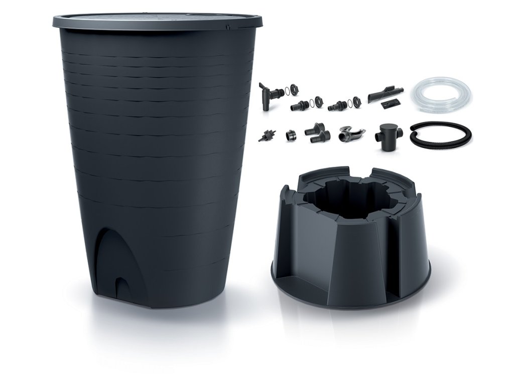 Sud na dešťovou vodu s podstavcem a příslušenstvím PERUNO SET antracit 260l