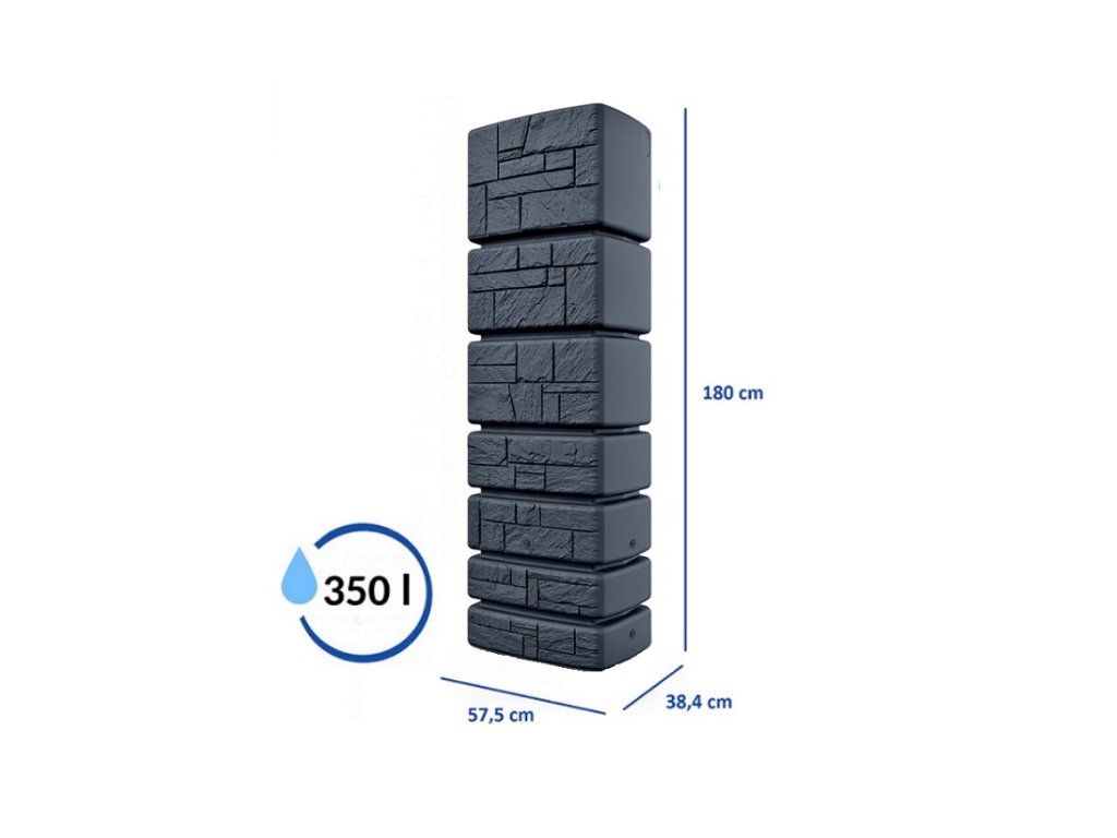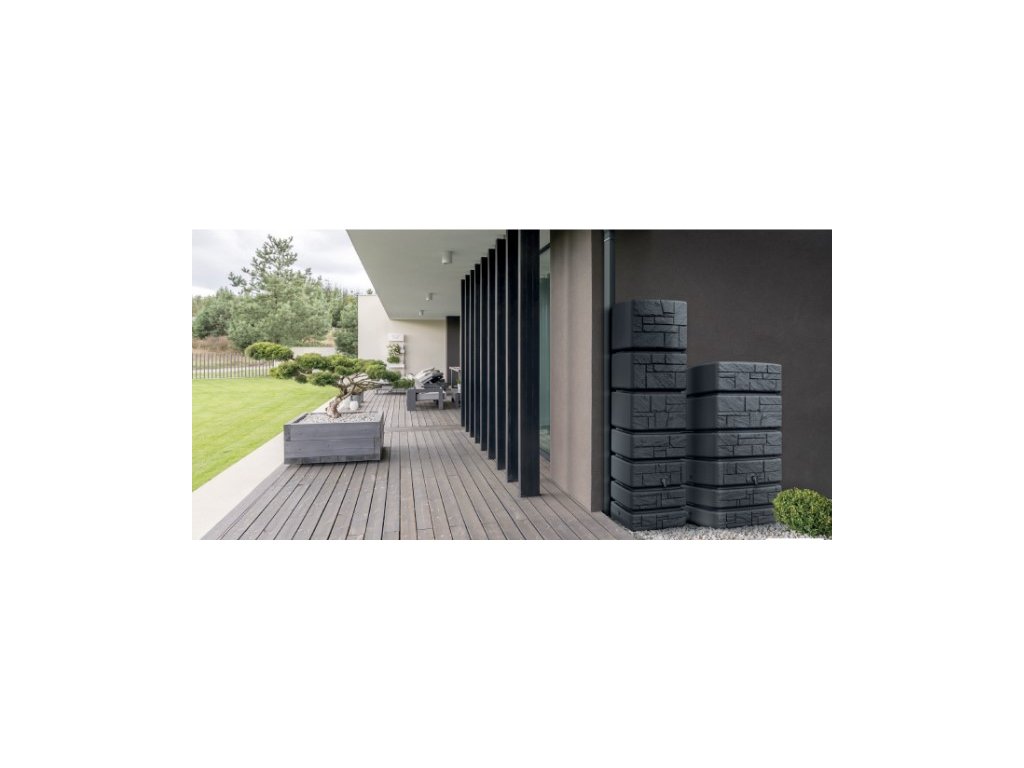 Praktická nádrž na dešťovou vodu TOWER STONE o objemu 350 litrů v antracitové barvě může být jednou ze součástí vašeho integrovaného systému úspory vody. Díky dešťové vodě je zalévání zahrady mnohem ekonomičtější a pro rostliny, jak okrasné a užitkové i prospěšnější. Díky obsahu dusíku ve vodě se tento prvek dostává k rostlinám pro ně přirozenou formou. Dešťová voda neobsahuje chlór, žádné soli vápníku a hořčíku, což jsou chemické látky, které způsobují trvalou nebo dočasnou tvrdost vody. I proto je vhodná pro kapkové závlahy, které se nezanášejí a lépe fungují.