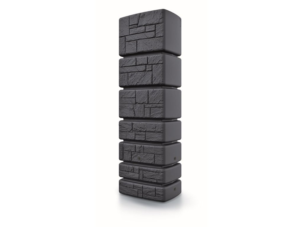 Moderní nádrž na dešťovou vodu Tower Stone je dekorativní nádrž, jejíž přední strana je zdobena imitací břidlicového obkladu. Nádrž je vyrobena z kvalitního plastu, který je odolný vůči povětrnostním vlivům, nekoroduje a nevybledne. Nádrž má v horní části otvor o průměru 20 cm s víkem. V tomto otvoru můžete použít zahradní čerpadlo. Okap s nádrží lze jednoduše propojit předpřipravenými plochami pomocí spojovacího systému Waterform Icanset, který zakoupíte v našem e-shopu. V přední části je sud ve výšce 38 cm nad zemí osazen otvory s 3/4" závitem pro napojení kohoutku ITAP(není součástí balení). Nádrž má také dva boční odtoky kousek od země pro napojení hadice na vodu, nebo pro úplné vypuštění nádrže. Konstrukčně je tento typ sudu tzv. foukán, aby byl na rovném povrchu dobře stabilní a tudíž není potřeba podstavce. Kamenný vzhled se skvěle hodí do moderních interiérů a zahrad v souladu s trendy v současné architektuře.