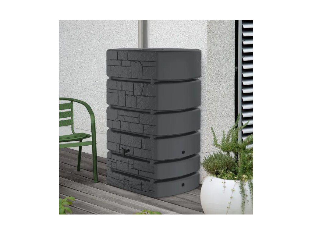 Praktická nádrž na dešťovou vodu TOWER STONE o objemu 500 litrů v antracitové barvě může být jednou ze součástí vašeho integrovaného systému úspory vody. Díky dešťové vodě je zalévání zahrady mnohem ekonomičtější a pro rostliny, jak okrasné a užitkové i prospěšnější. Díky obsahu dusíku ve vodě se tento prvek dostává k rostlinám pro ně přirozenou formou. Dešťová voda neobsahuje chlór, žádné soli vápníku a hořčíku, což jsou chemické látky, které způsobují trvalou nebo dočasnou tvrdost vody. I proto je vhodná pro kapkové závlahy, které se nezanášejí a lépe fungují.