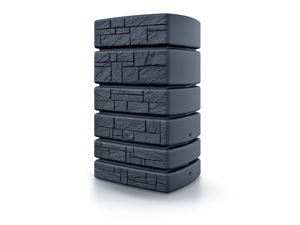 Moderní nádrž na dešťovou vodu Tower Stone je dekorativní nádrž, jejíž přední strana je zdobena imitací břidlicového obkladu. Nádrž je vyrobena z kvalitního plastu, který je odolný vůči povětrnostním vlivům, nekoroduje a nevybledne. Nádrž má v horní části otvor o průměru 20 cm s víkem. V tomto otvoru můžete použít zahradní čerpadlo. Okap s nádrží lze jednoduše propojit předpřipravenými plochami pomocí spojovacího systému Waterform Icanset, který zakoupíte v našem e-shopu. V přední části je sud ve výšce 38 cm nad zemí osazen otvory s 3/4" závitem pro napojení kohoutku ITAP(není součástí balení). Nádrž má také dva boční odtoky kousek od země pro napojení hadice na vodu, nebo pro úplné vypuštění nádrže. Konstrukčně je tento typ sudu tzv. foukán, aby byl na rovném povrchu dobře stabilní a tudíž není potřeba podstavce. Kamenný vzhled se skvěle hodí do moderních interiérů a zahrad v souladu s trendy v současné architektuře.